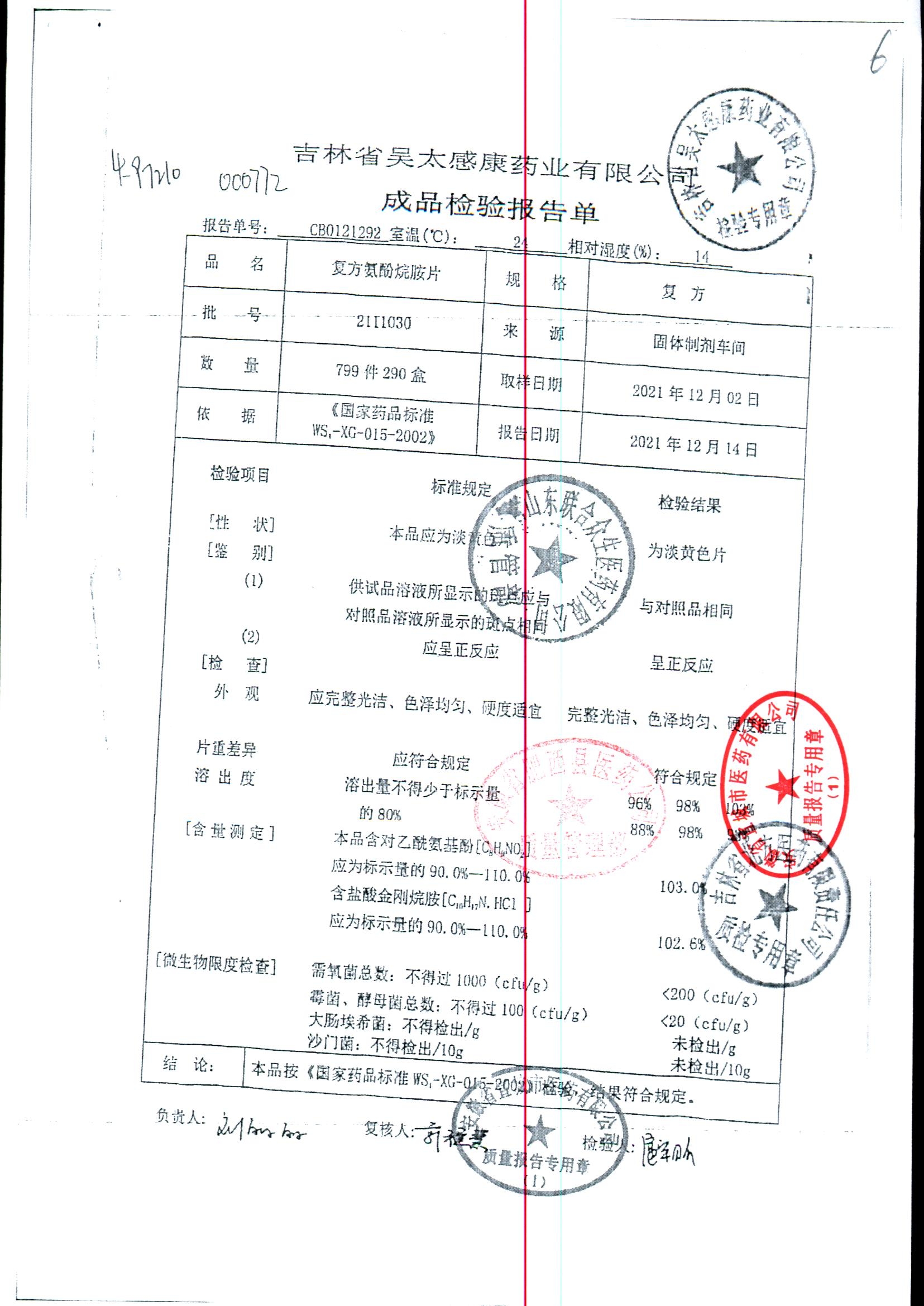| 復(fù)方氨酚烷胺片 | 復(fù)方 | 2108011 | 查看詳情 |