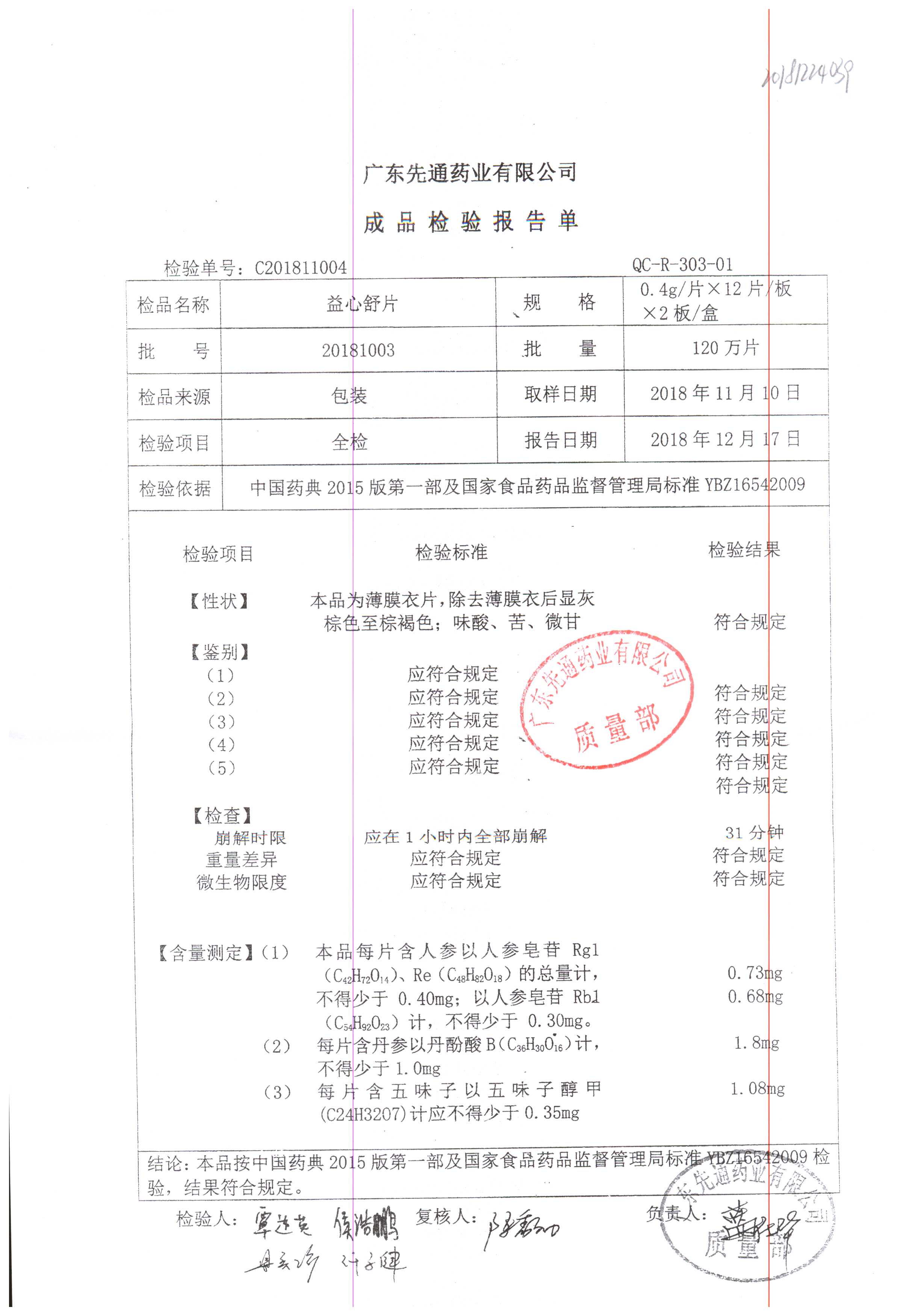 | 益心舒片 | 0.4g*24s | 20181003 | 查看詳情 |