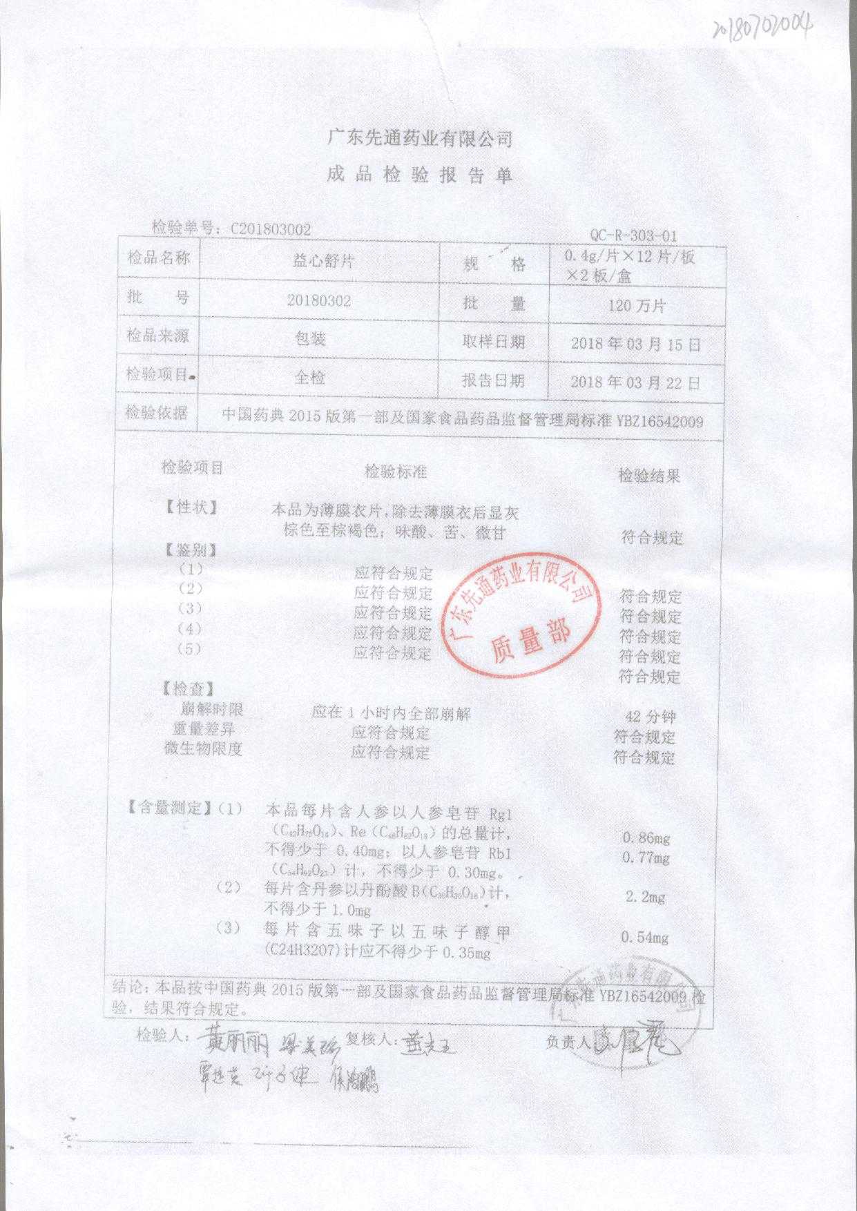 | 益心舒片 | 0.4g*24s | 20180702 | 查看詳情 |