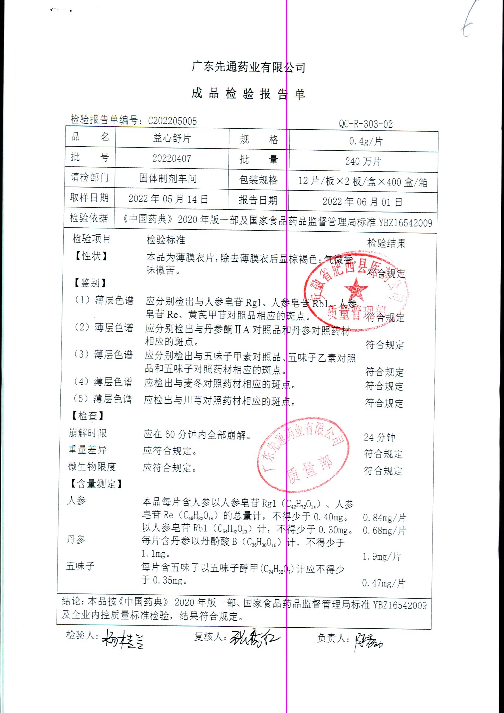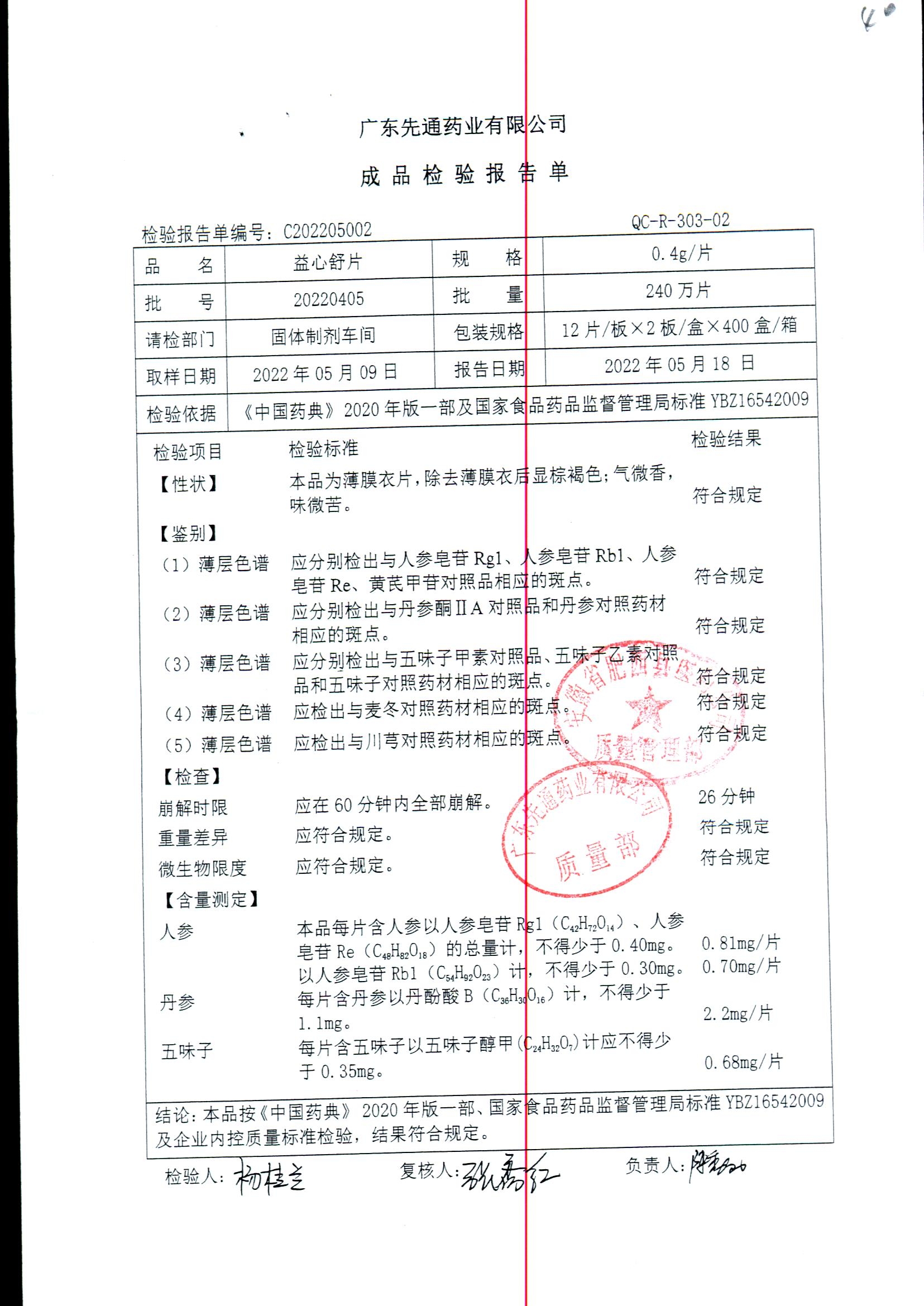 | 益心舒片 | 0.4g*24s | 20220405 | 查看詳情 |