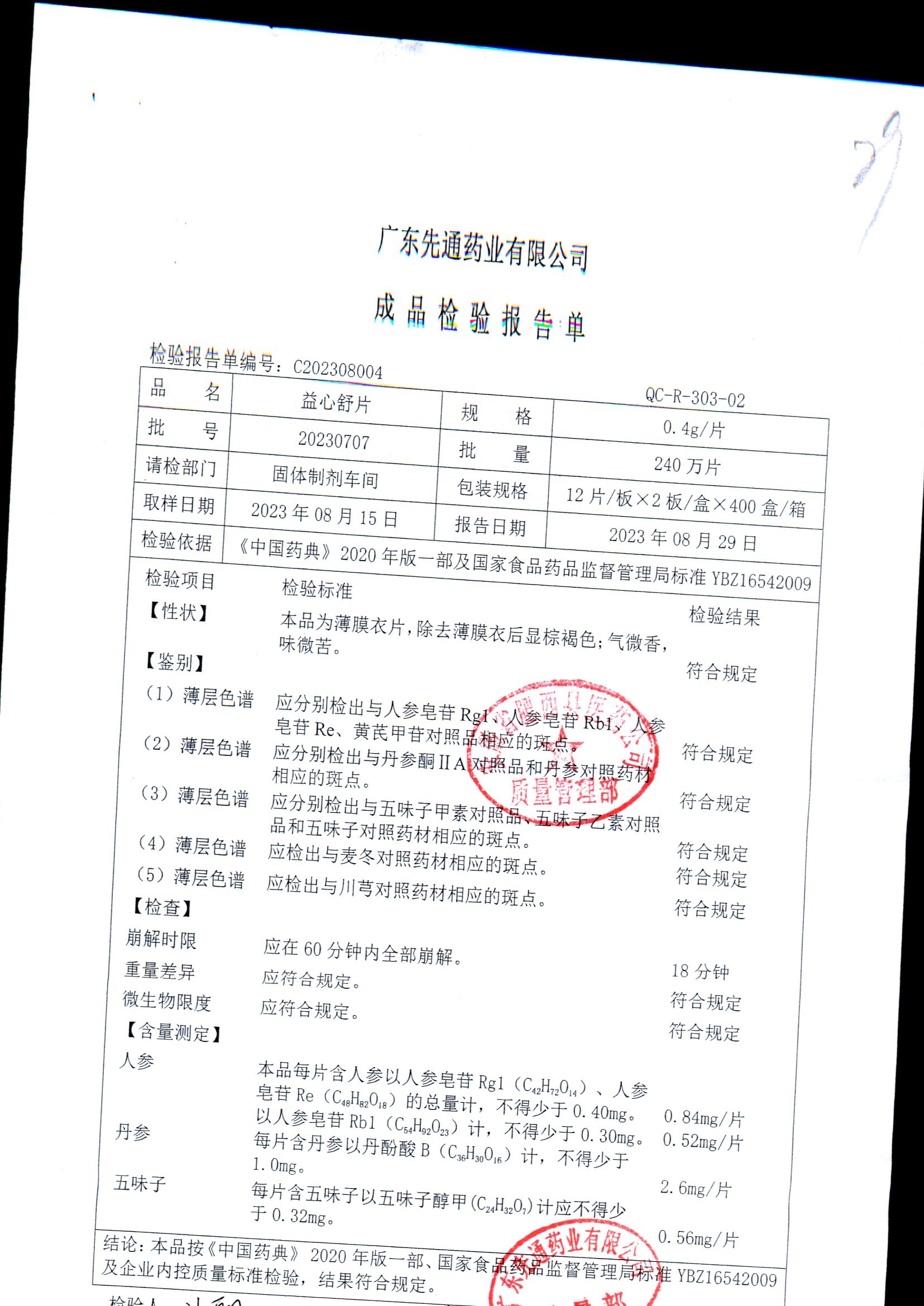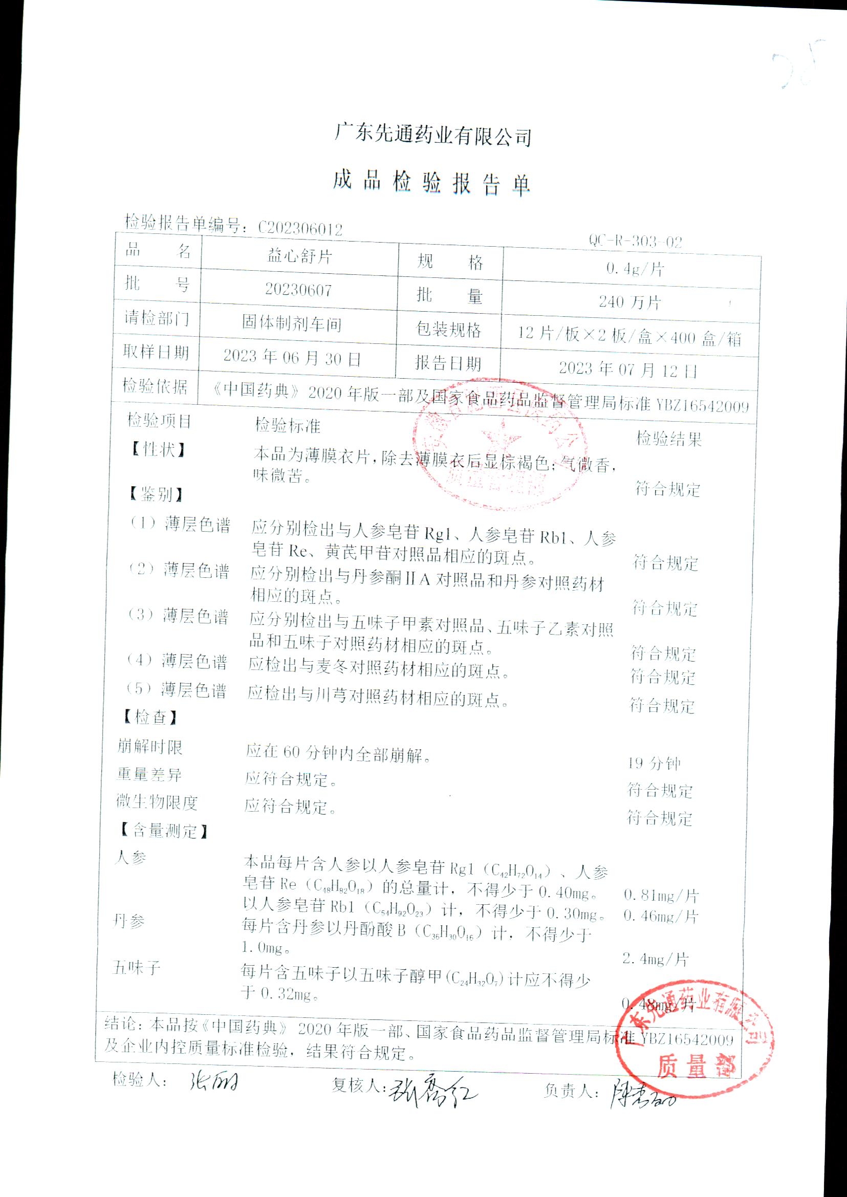| 益心舒片 | 0.4g*24s | 20230607 | 查看詳情 |