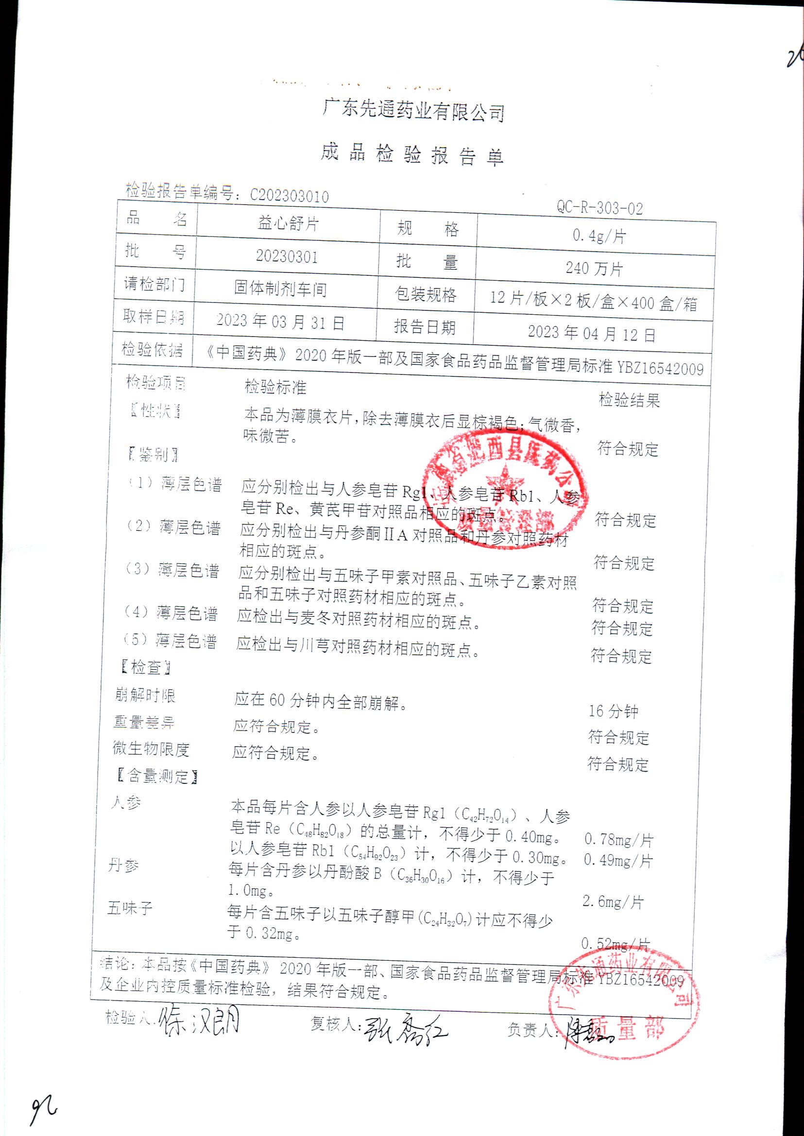 | 益心舒片 | 0.4g*24s | 20200401 | 查看詳情 |