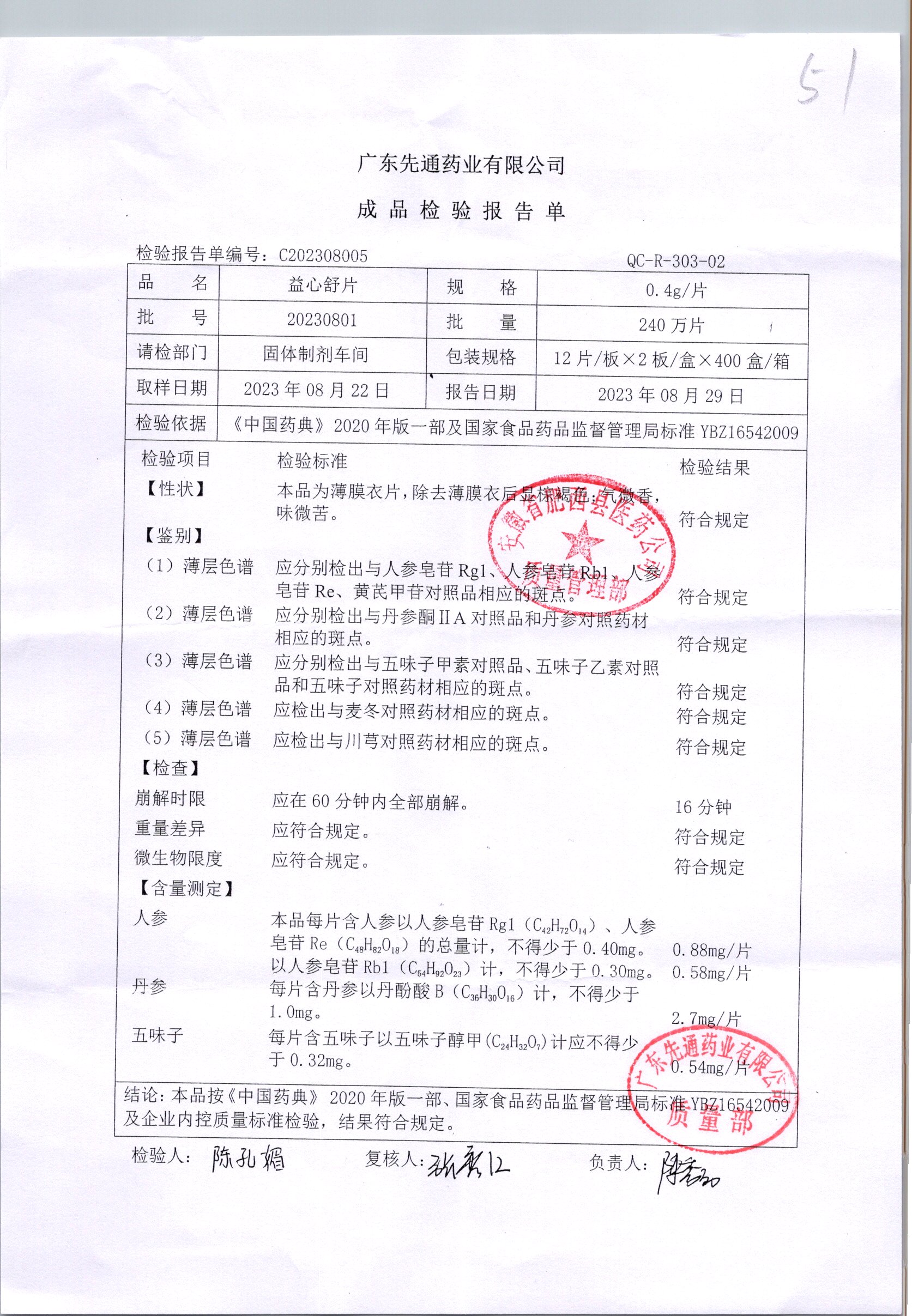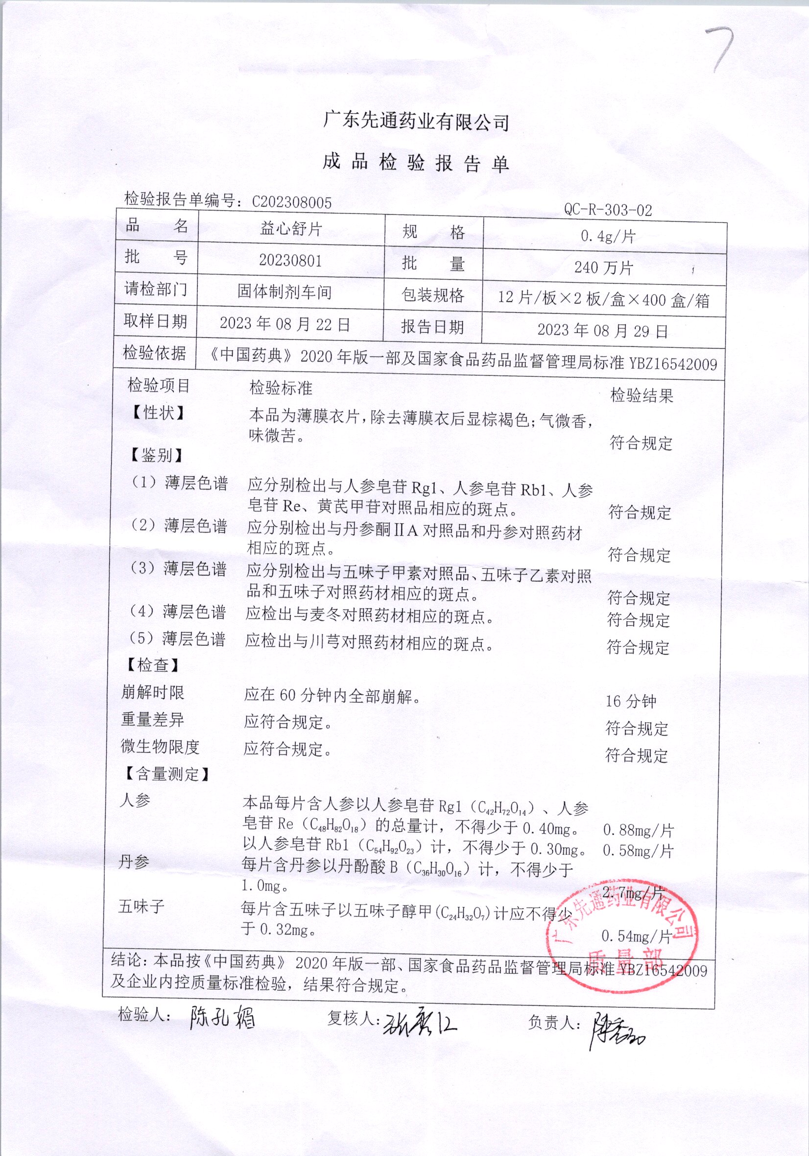 | 益心舒片 | 0.4g*24s | 20230801 | 查看詳情 |