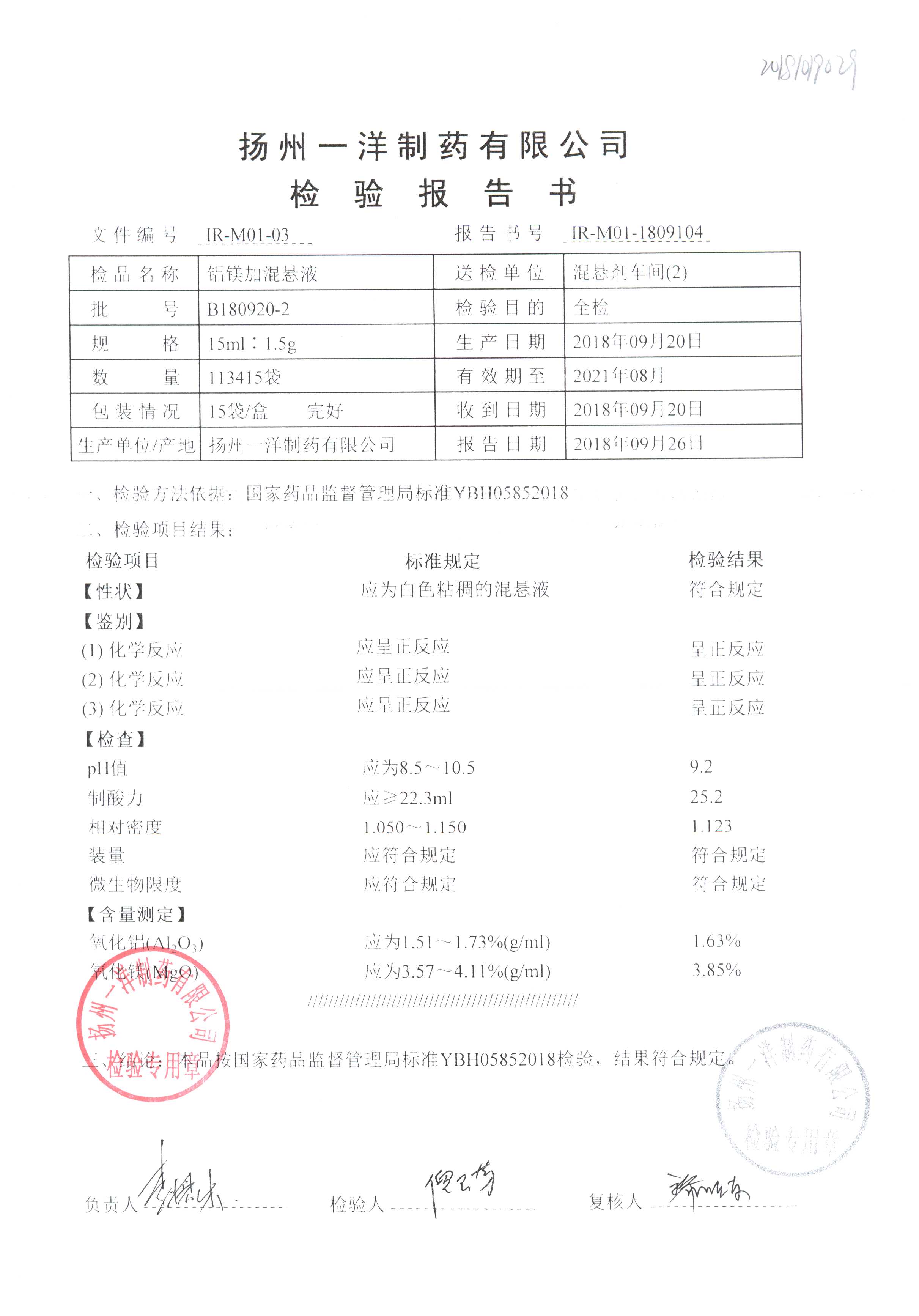 | 鋁鎂加混懸液 | 15ml:1.5g | B180920-2 | 查看詳情 |