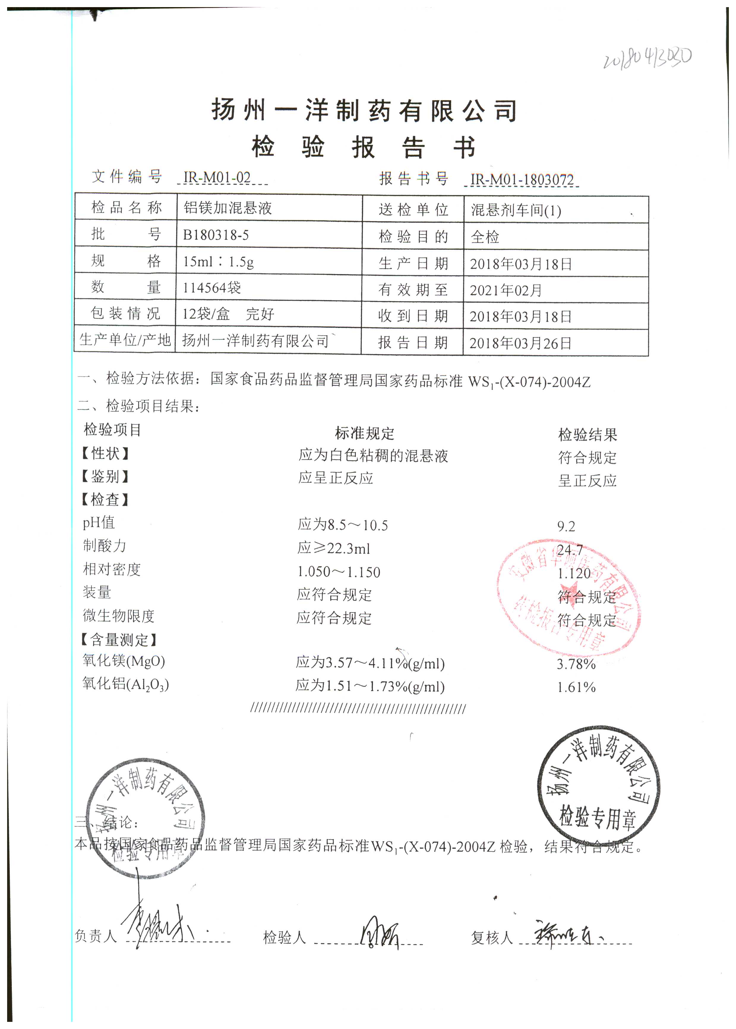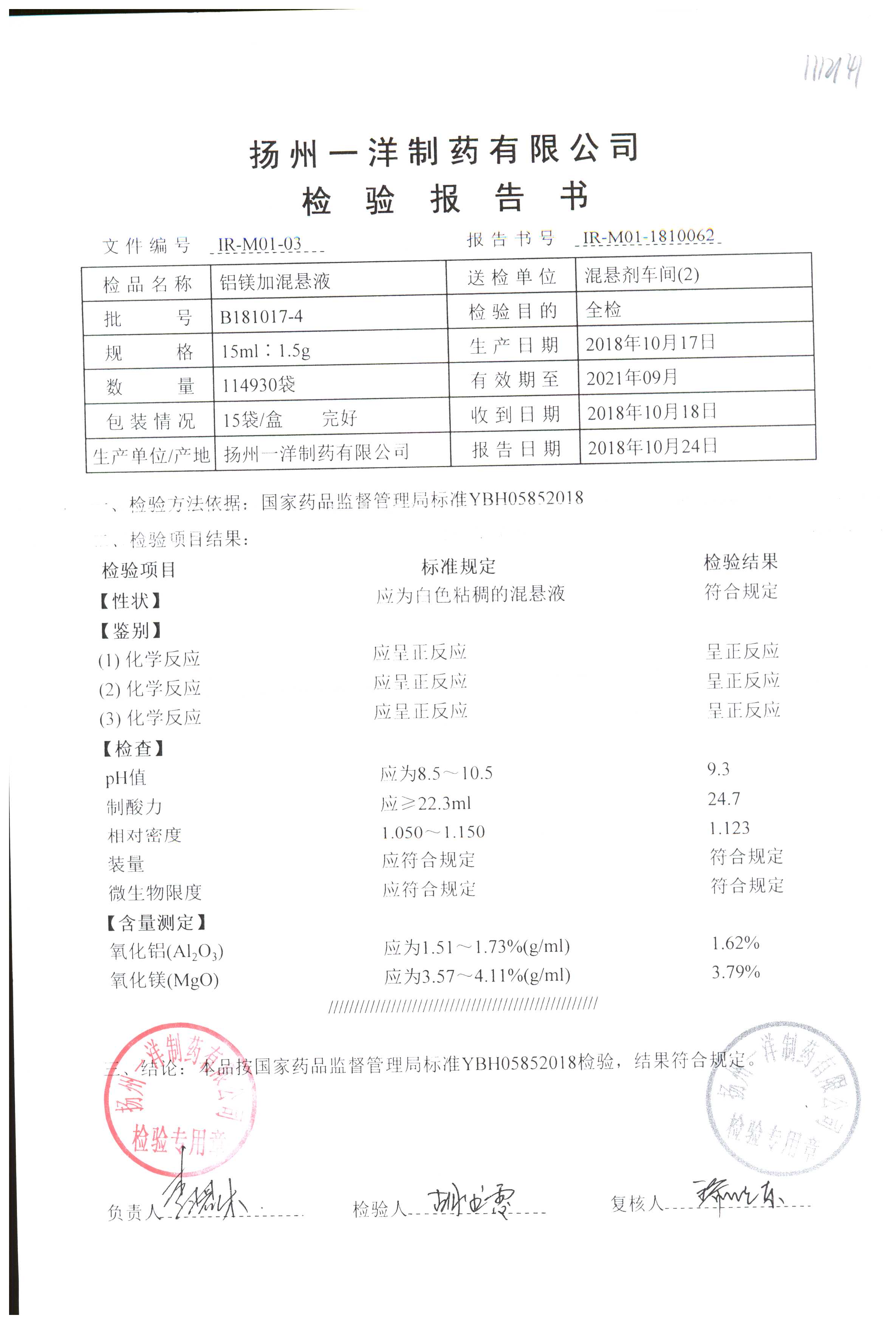 | 鋁鎂加混懸液 | 15ml:1.5g | B180413-2 | 查看詳情 |
