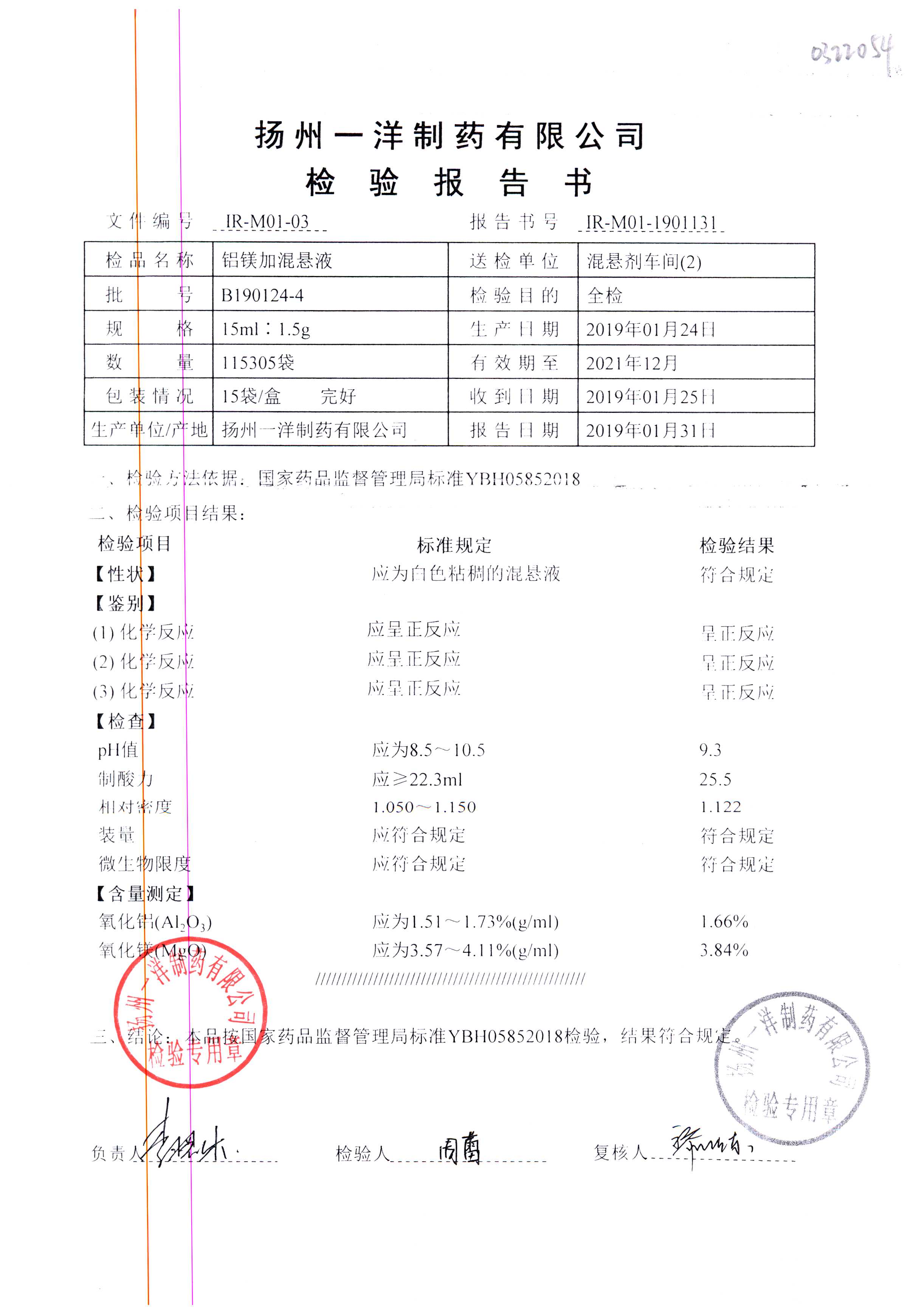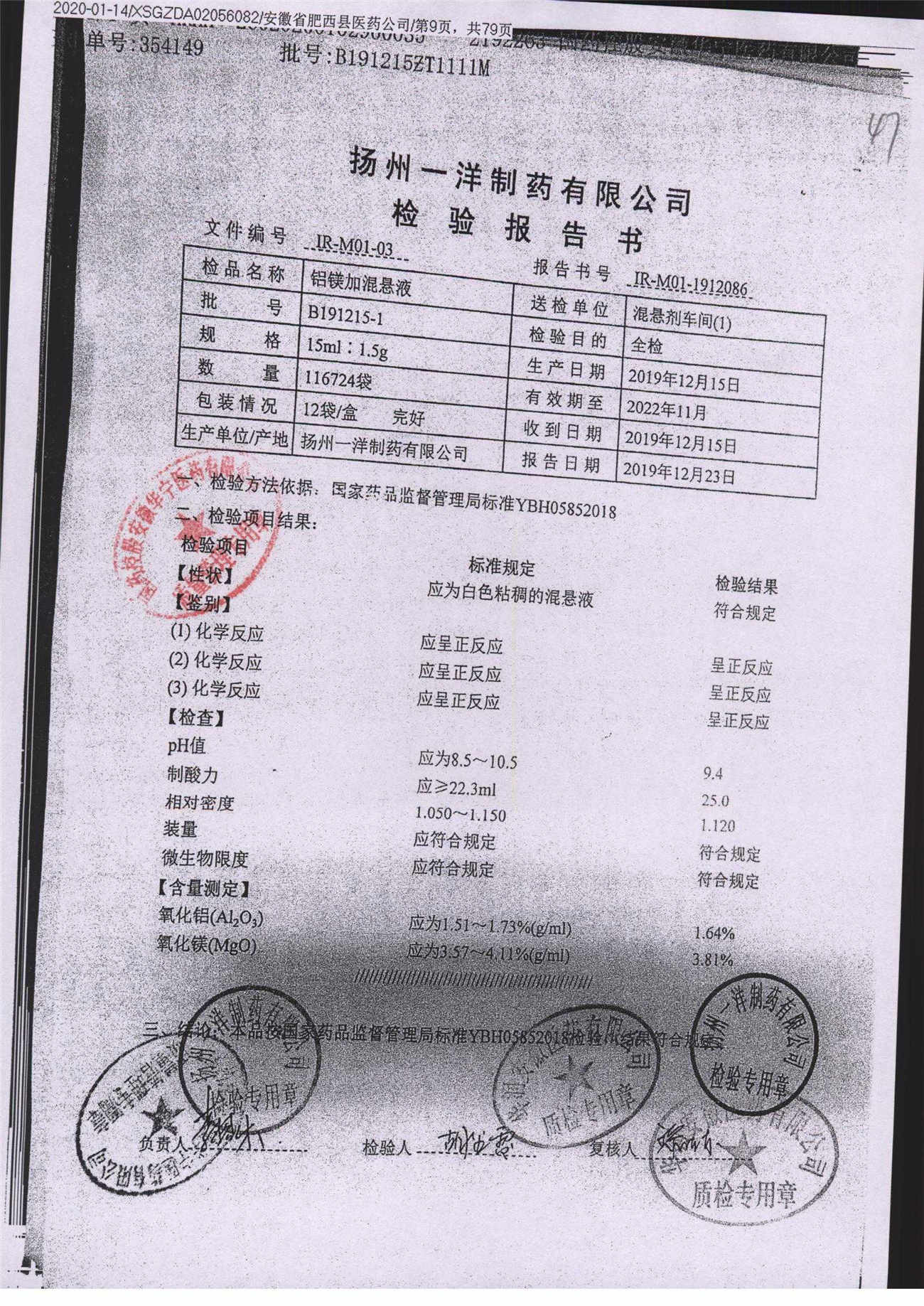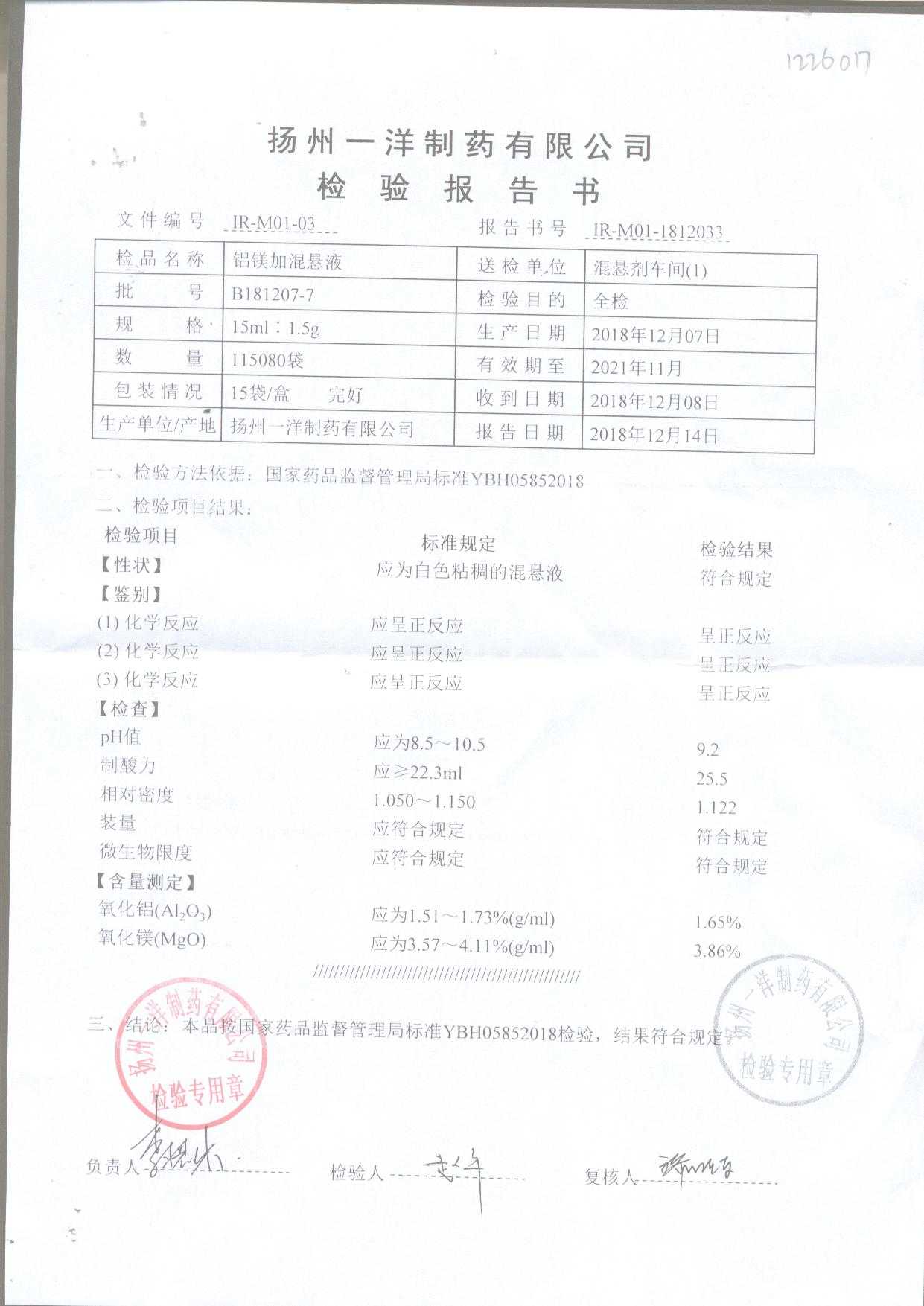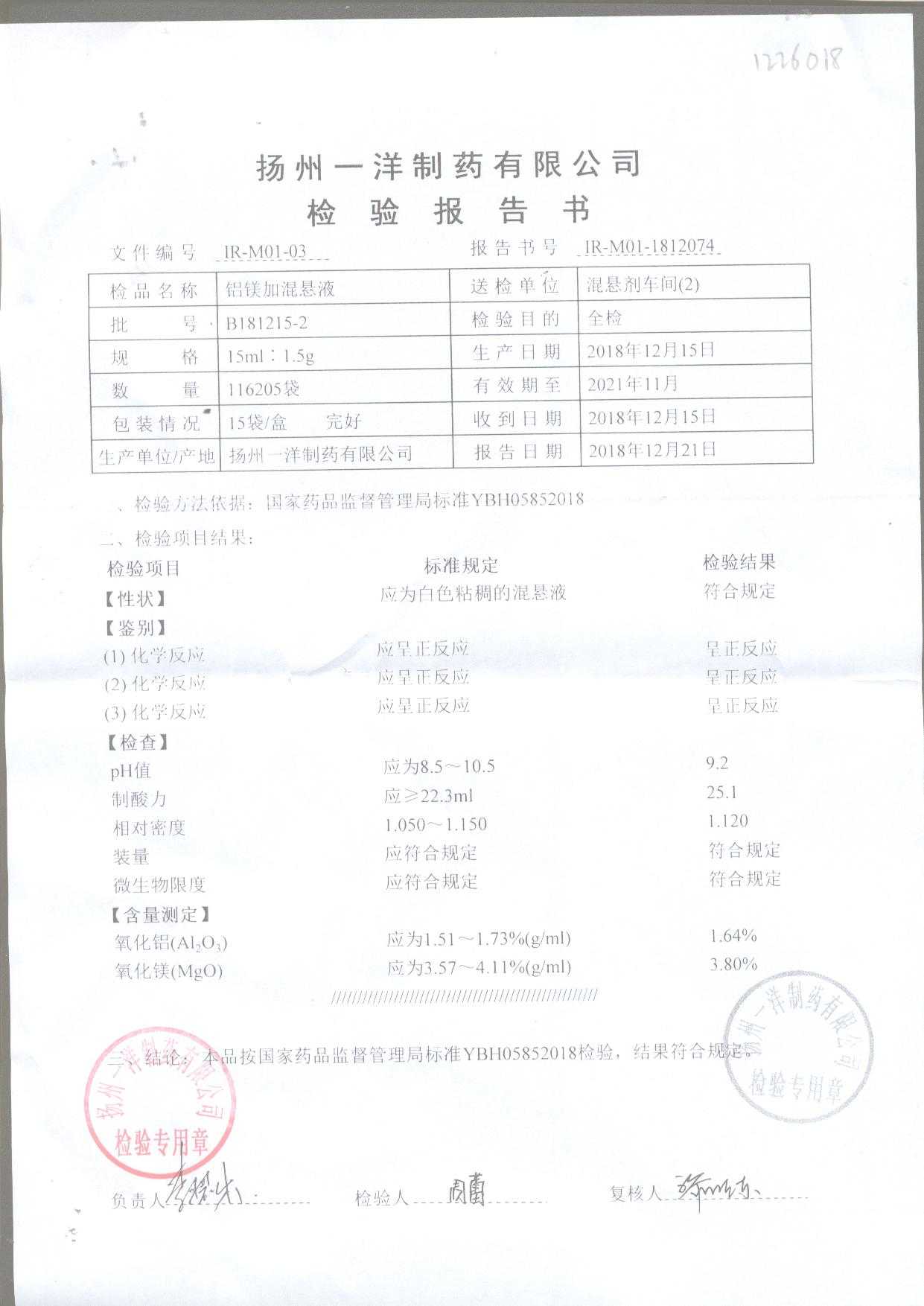 | 鋁鎂加混懸液 | 15ml:1.5g | B190124-4 | 查看詳情 |