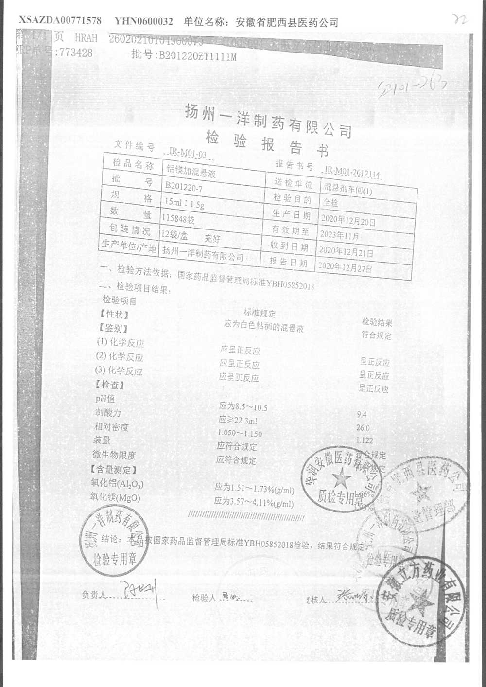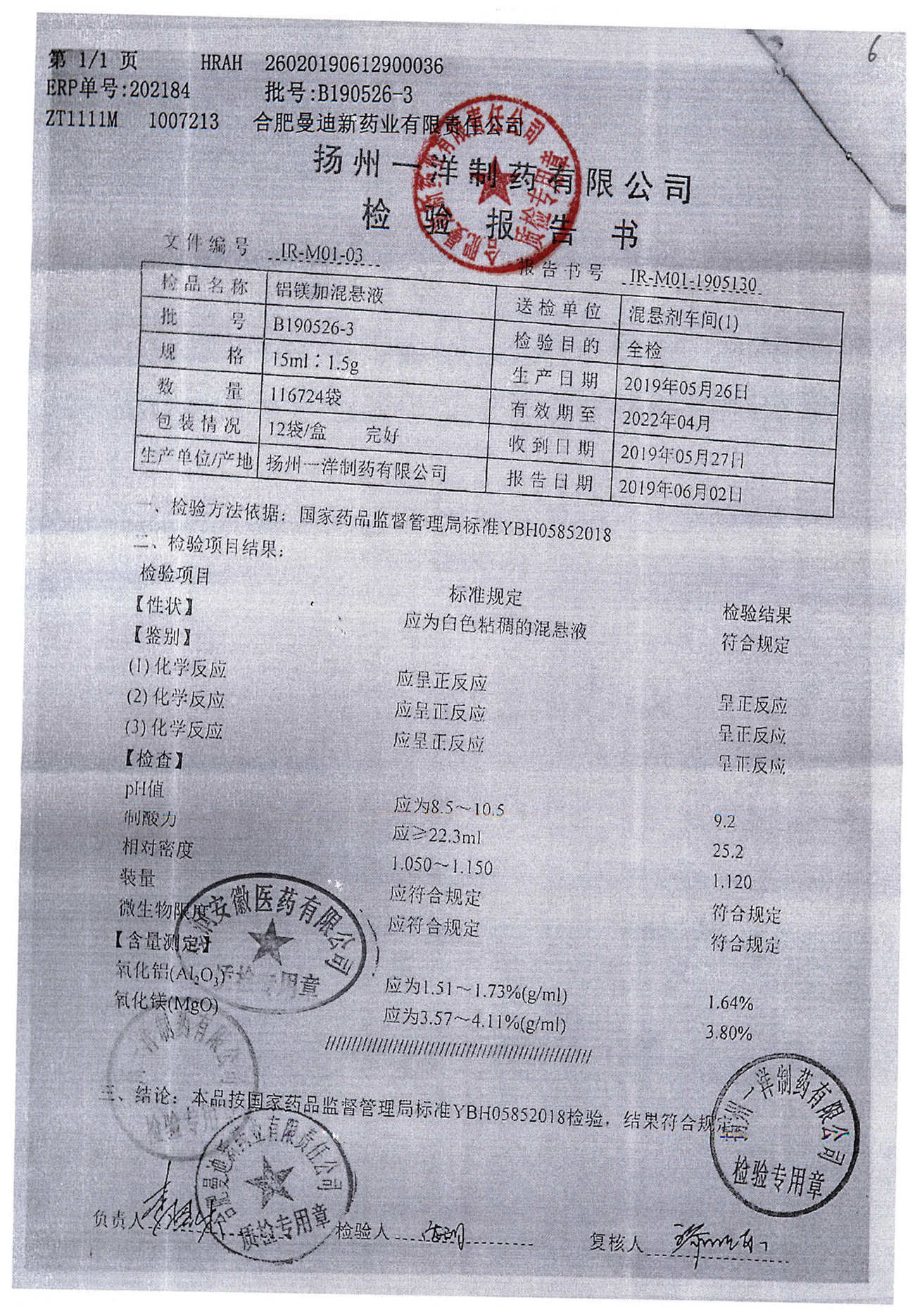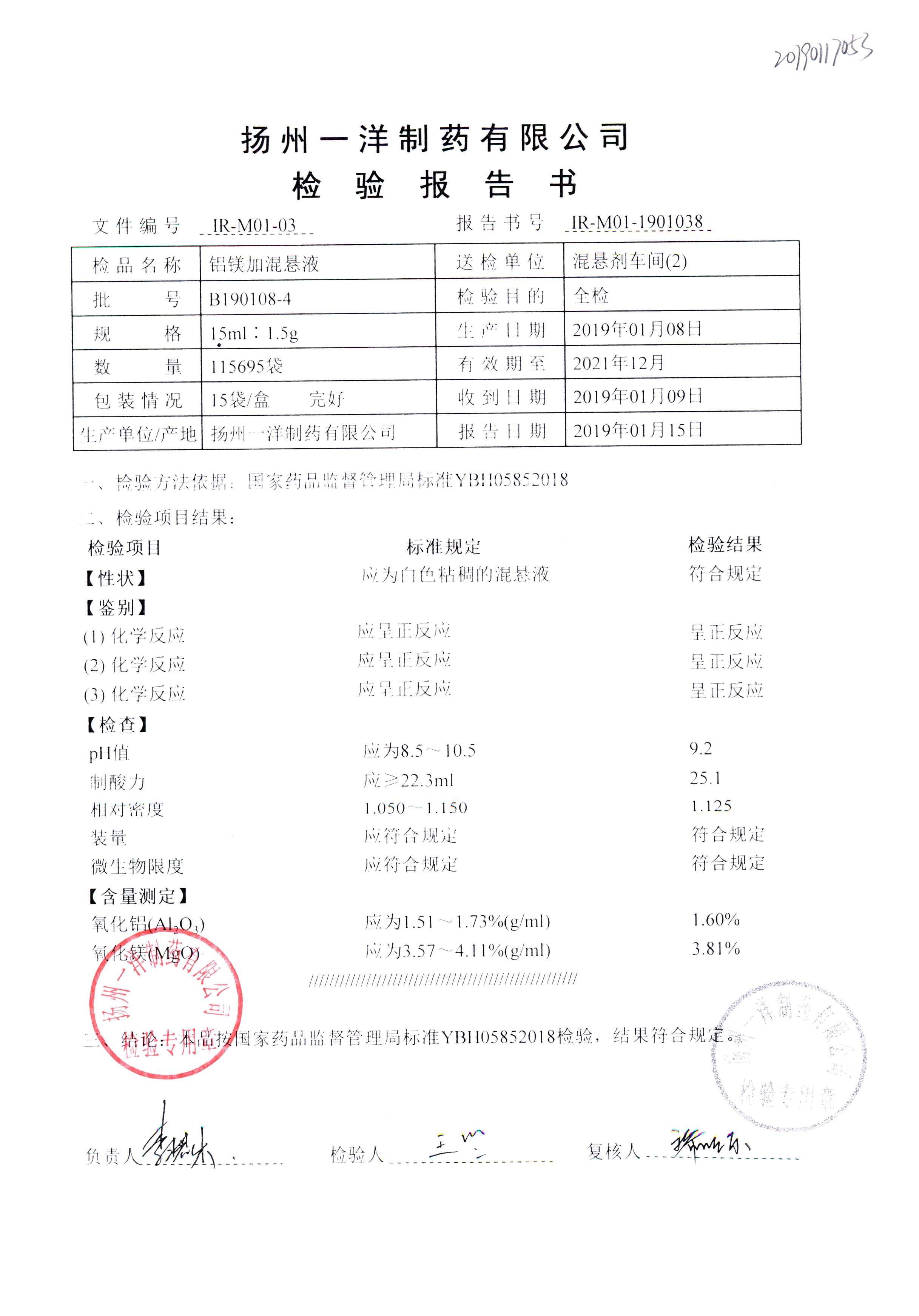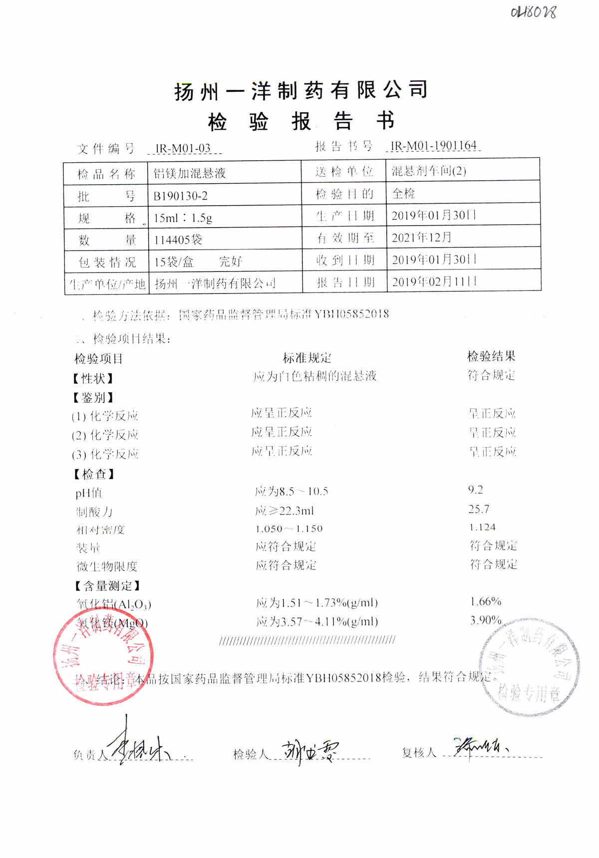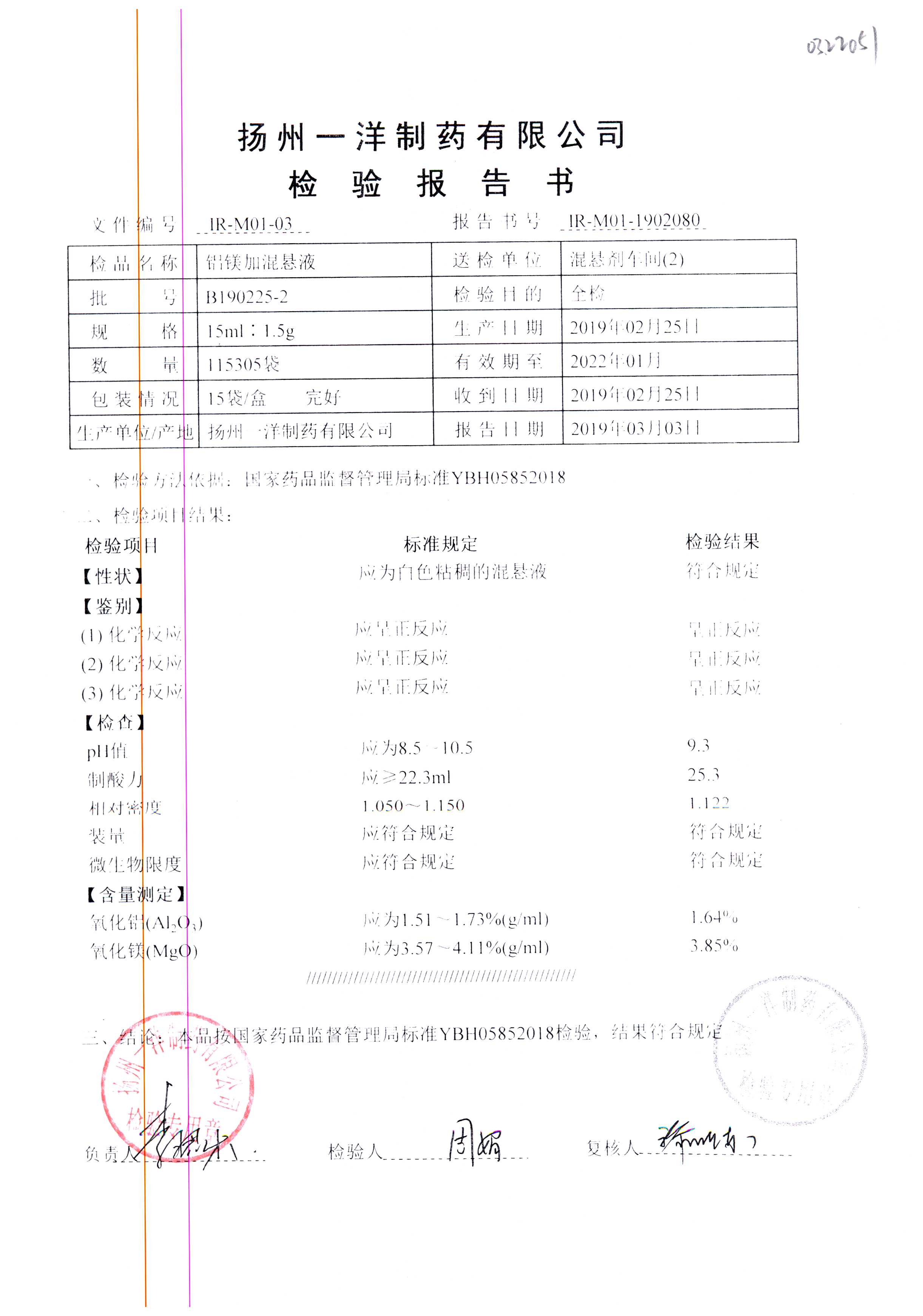 | 鋁鎂加混懸液 | 15ml:1.5g | B190124-4 | 查看詳情 |