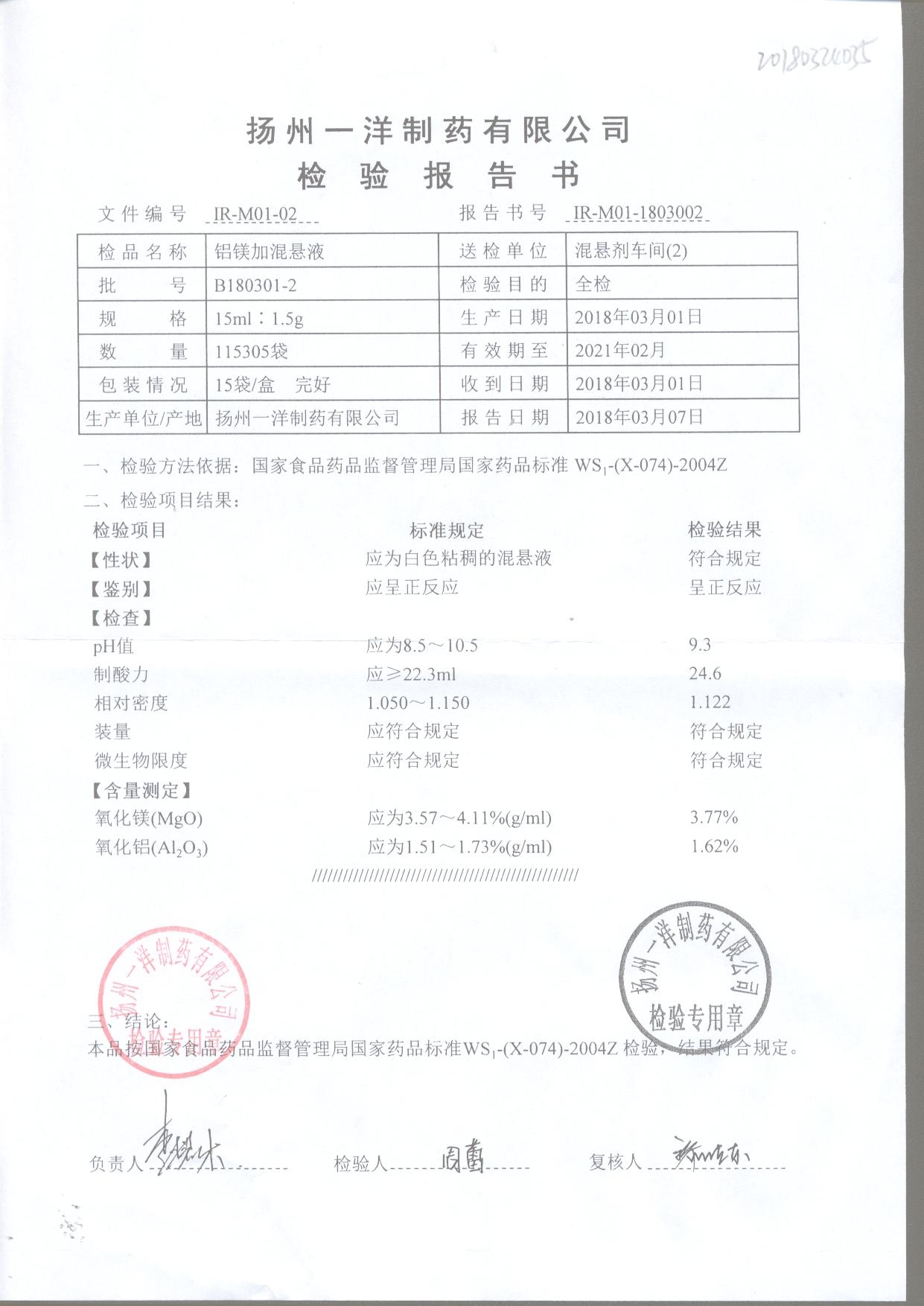 | 鋁鎂加混懸液 | 15ml:1.5g | B180318-5 | 查看詳情 |