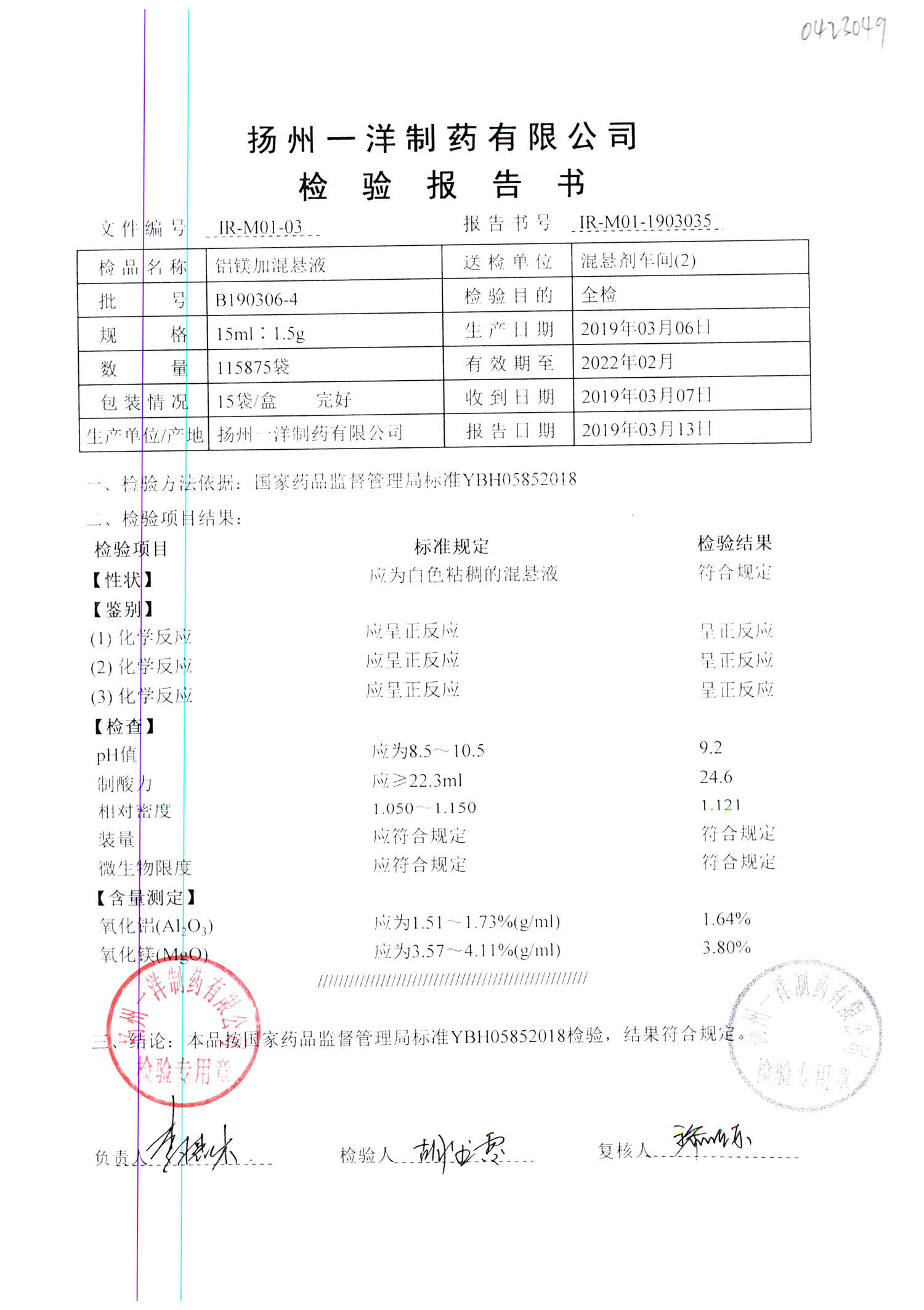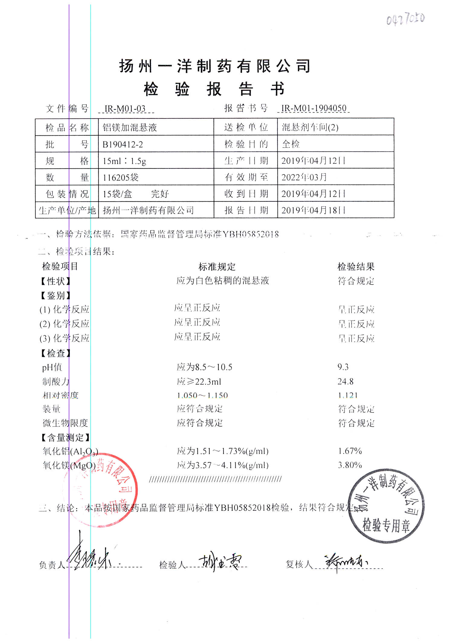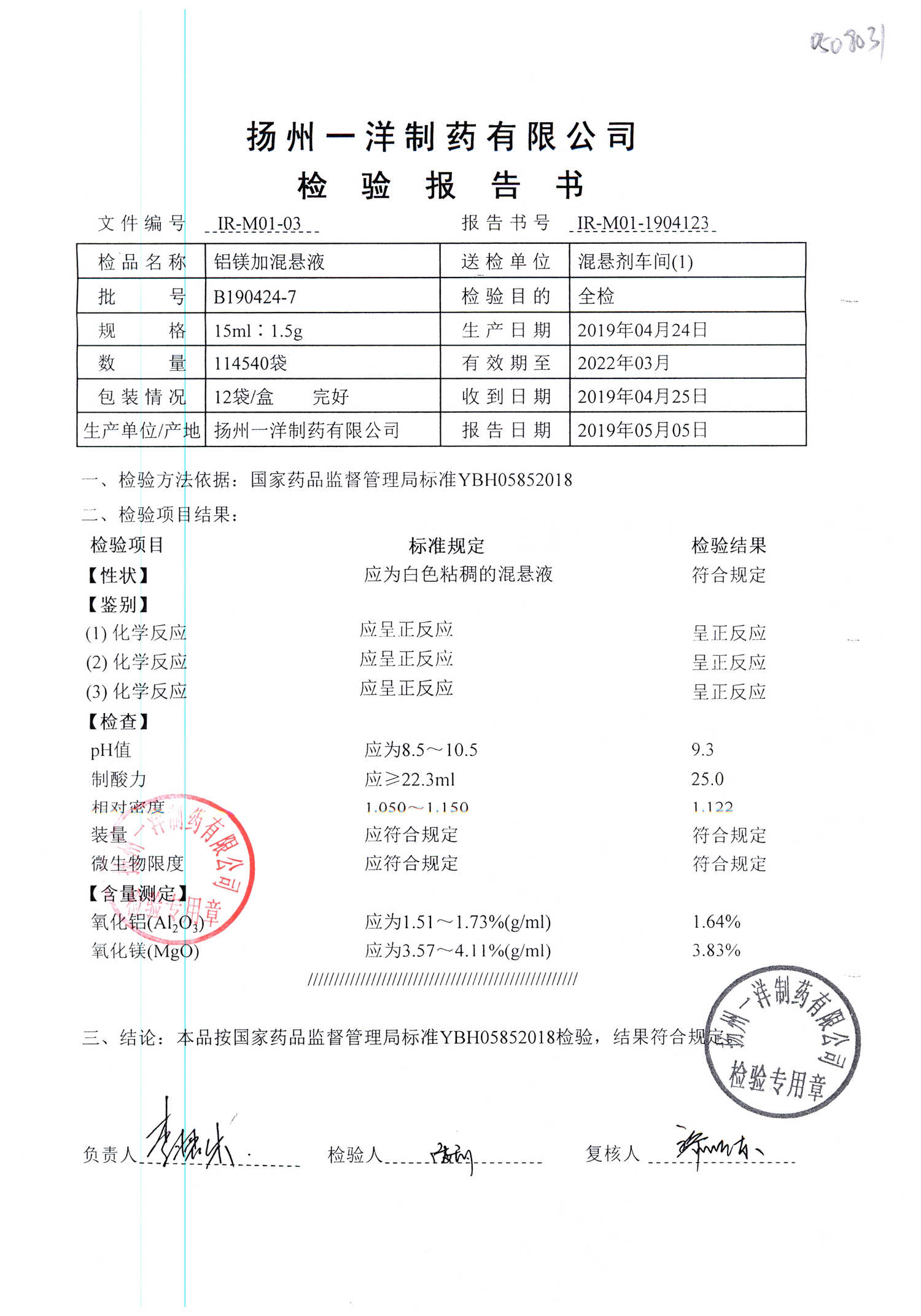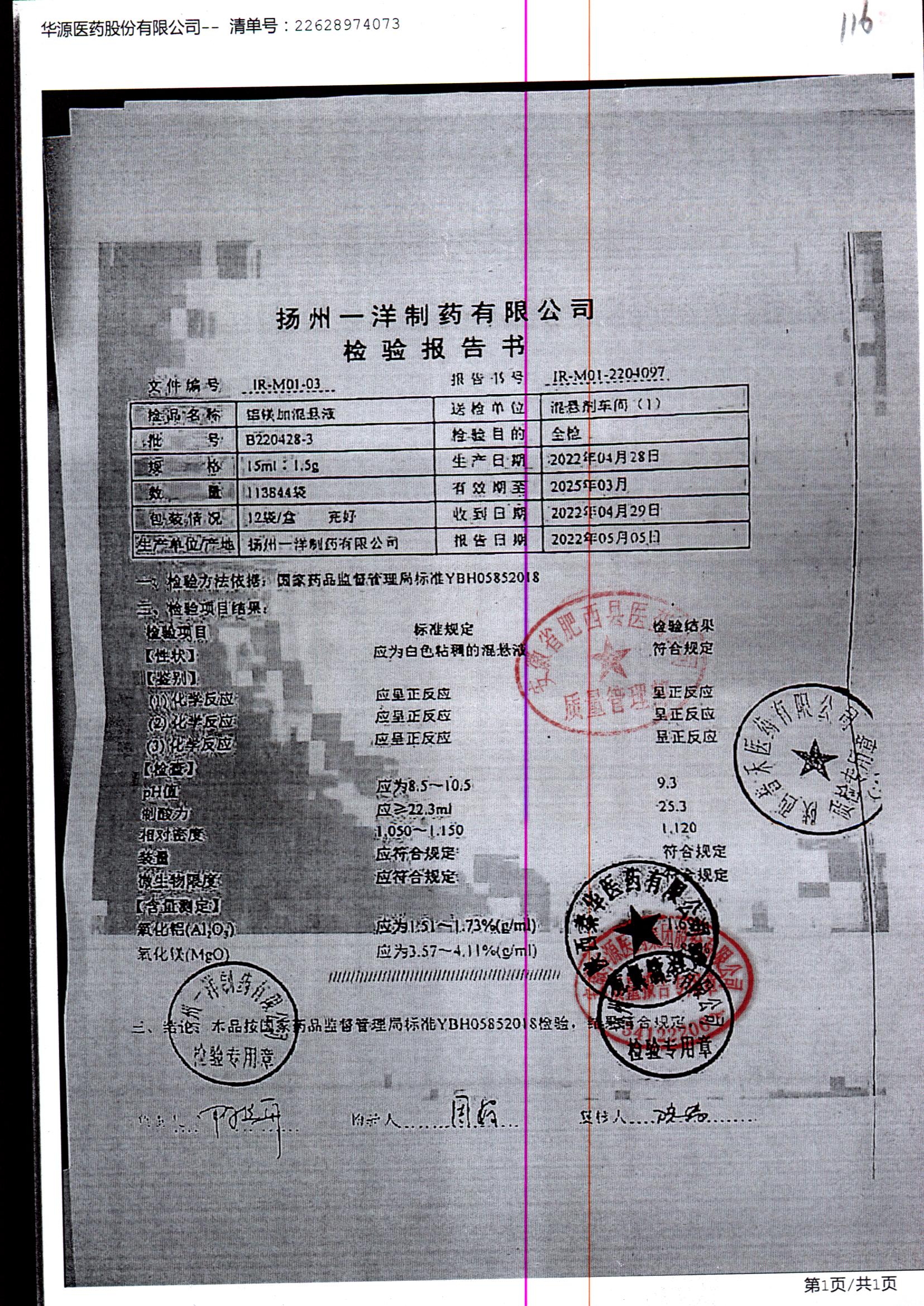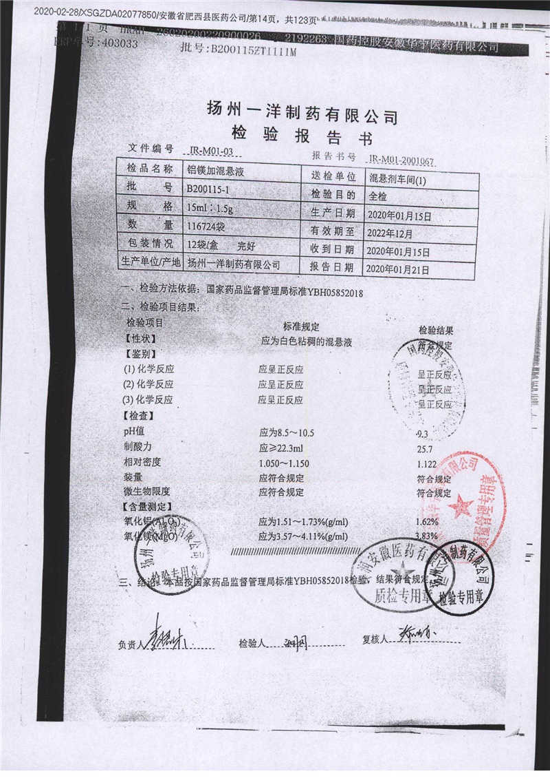 | 鋁鎂加混懸液 | 15ml:1.5g | B190424-7 | 查看詳情 |
