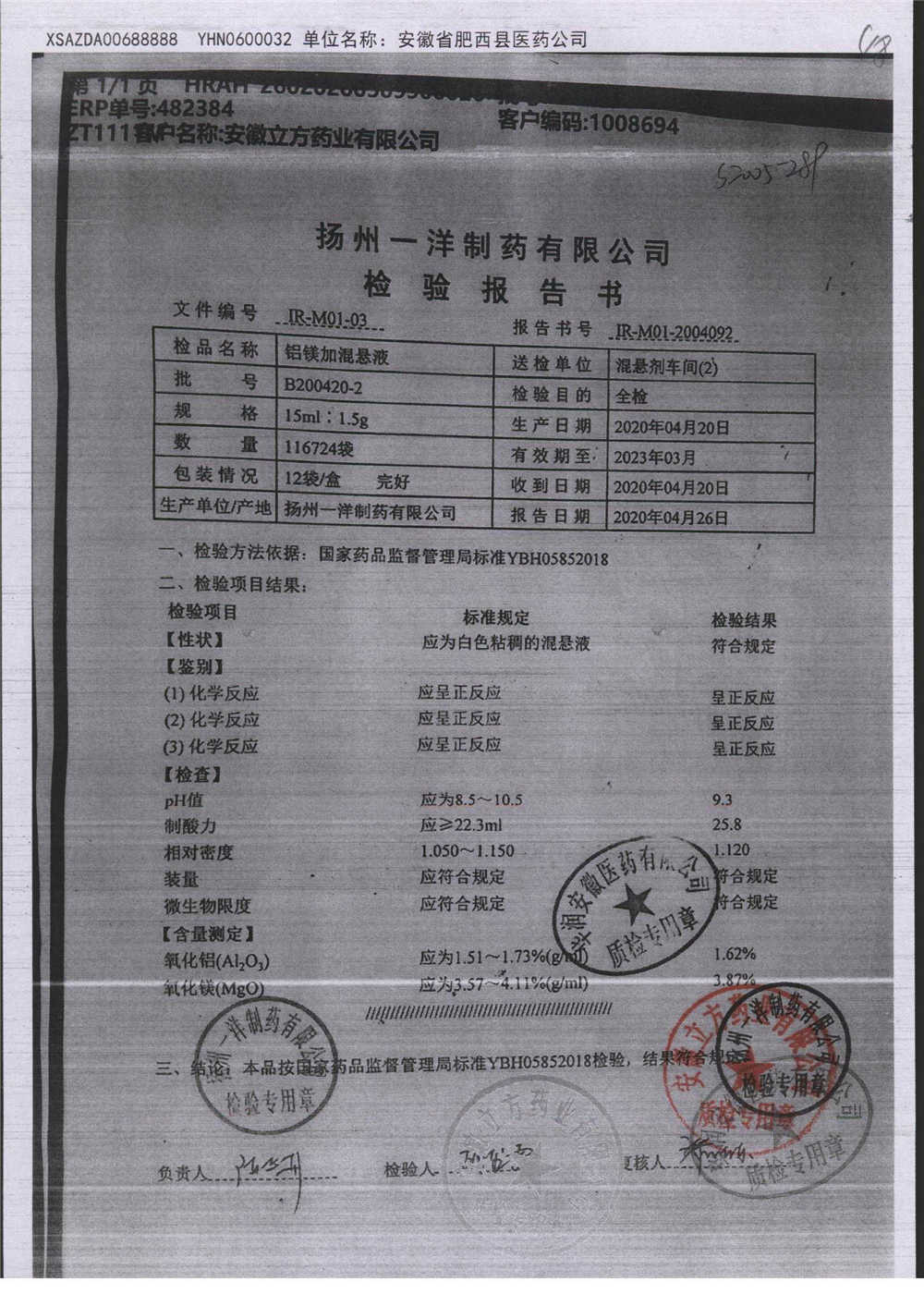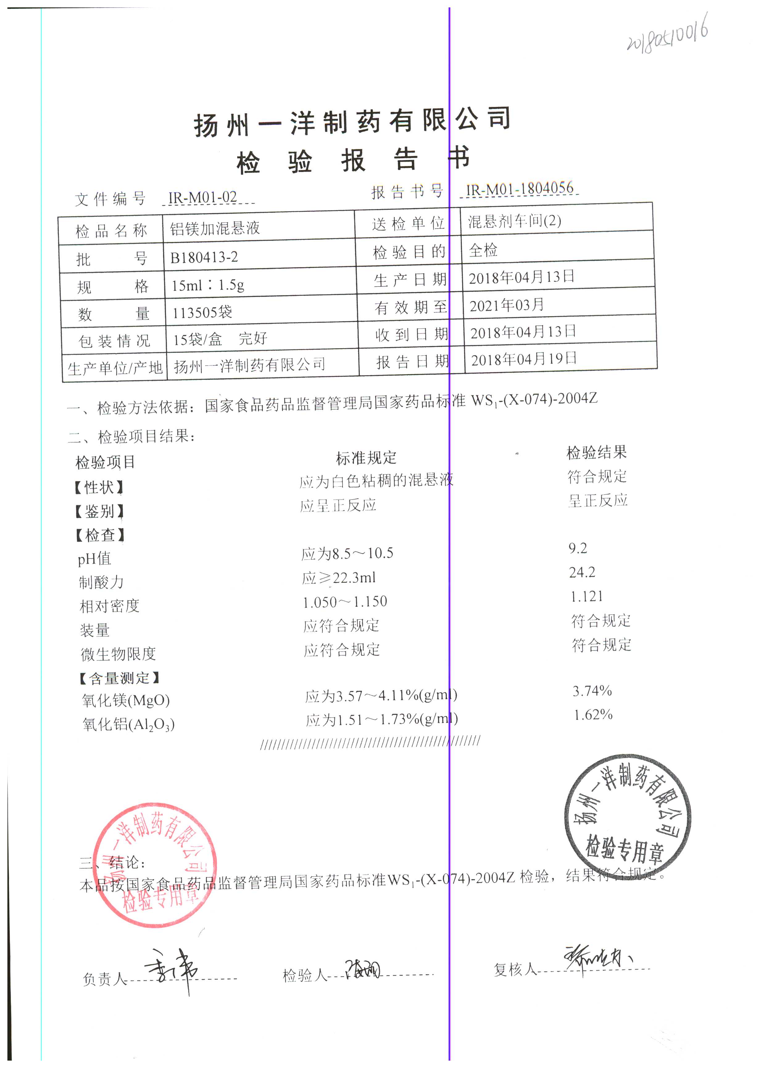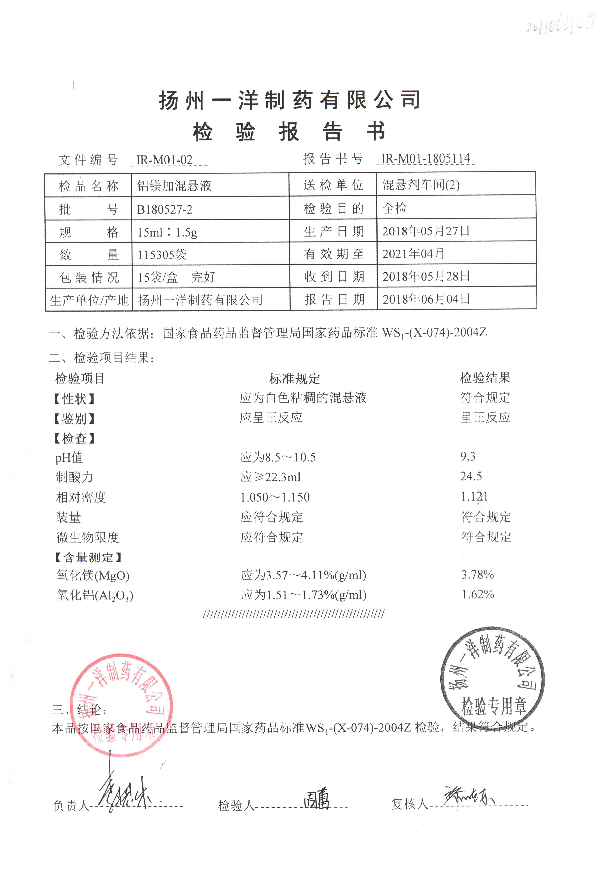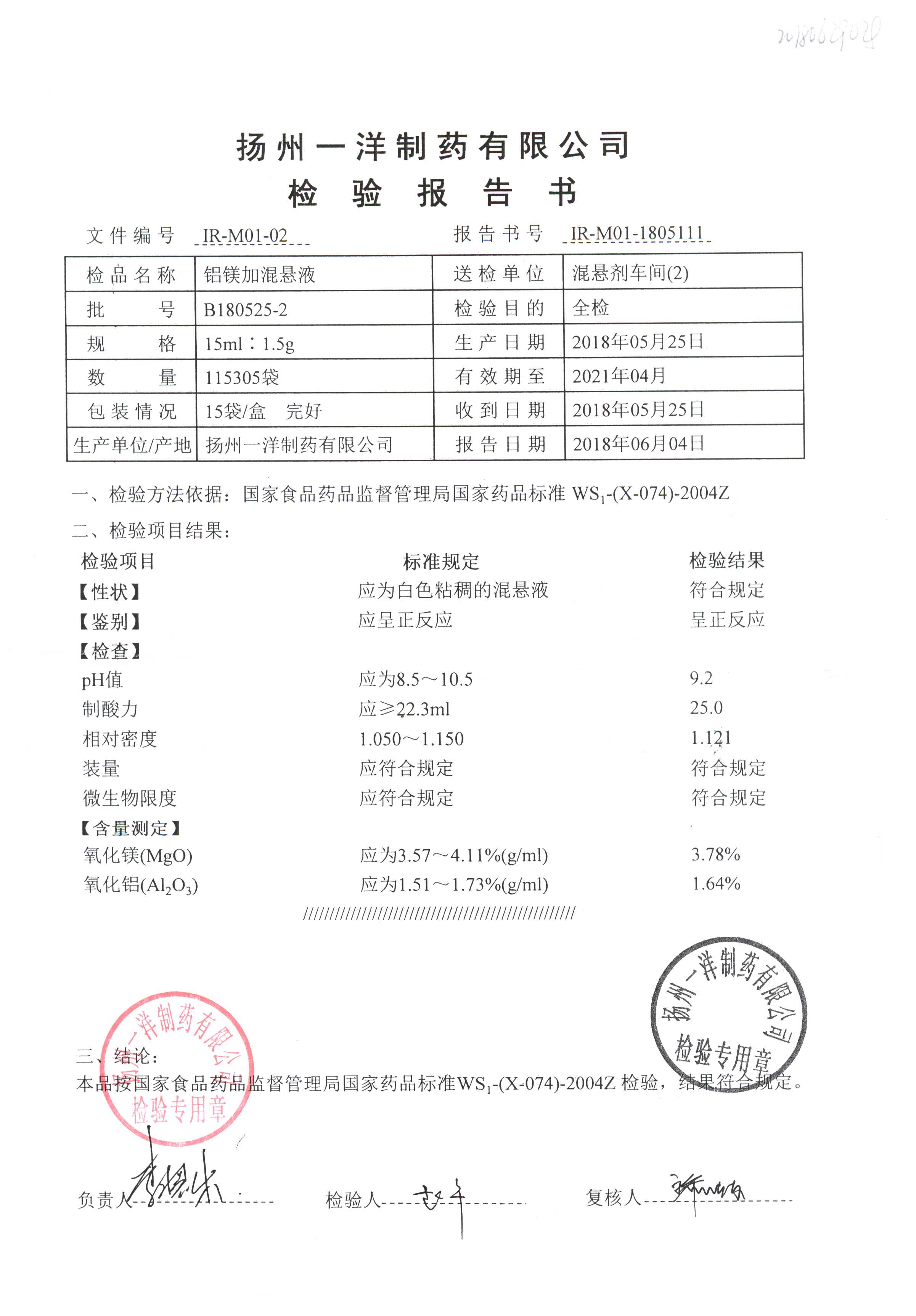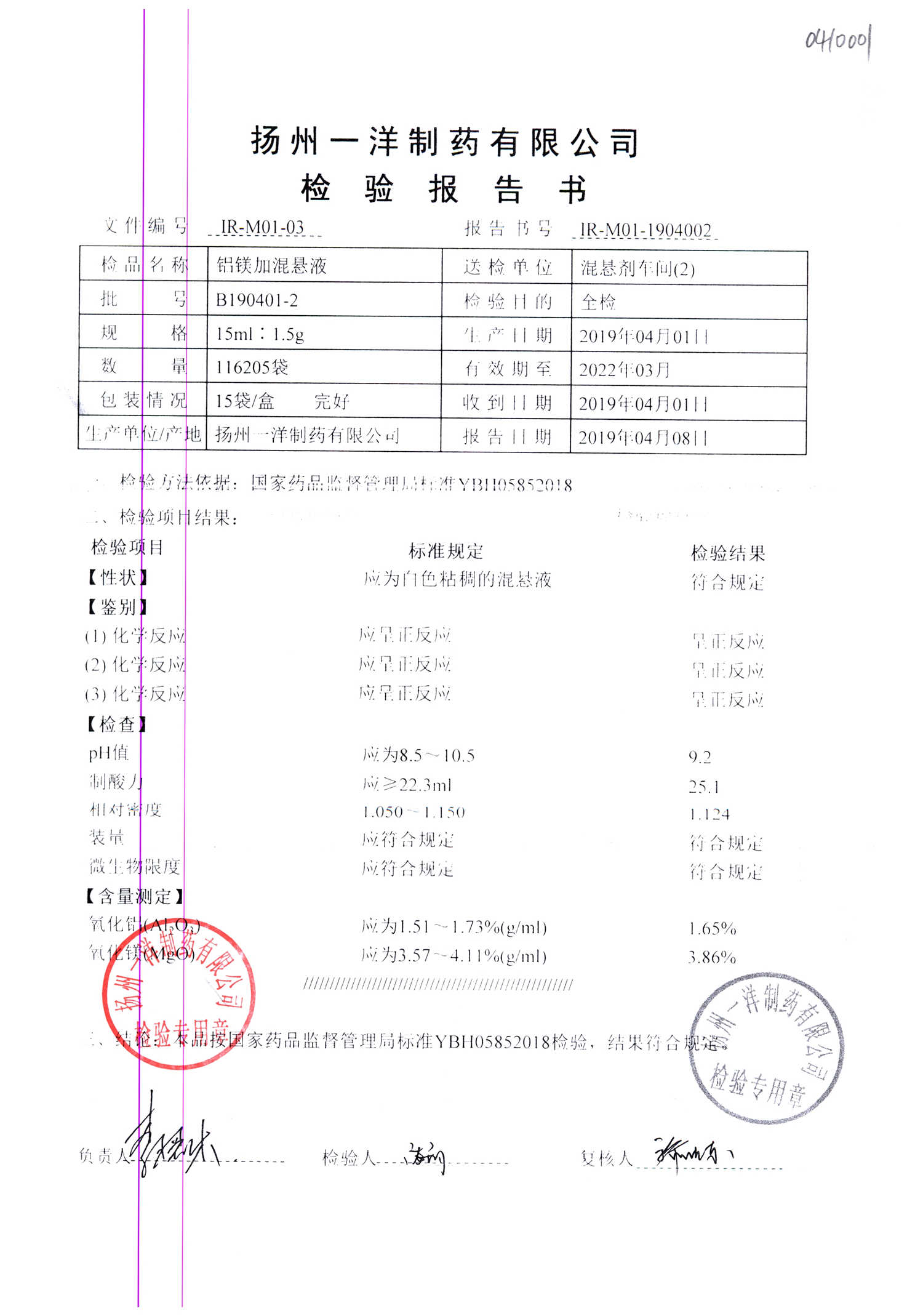 | 鋁鎂加混懸液 | 15ml:1.5g | B190424-7 | 查看詳情 |