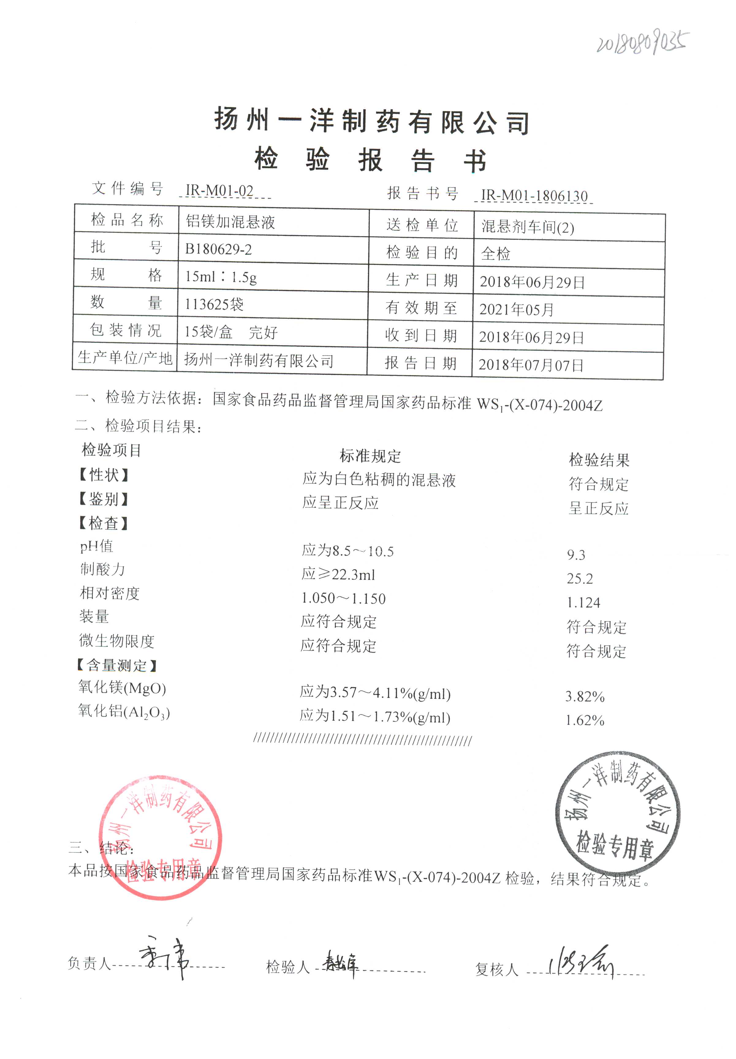 | 鋁鎂加混懸液 | 15ml:1.5g | B180907-2 | 查看詳情 |