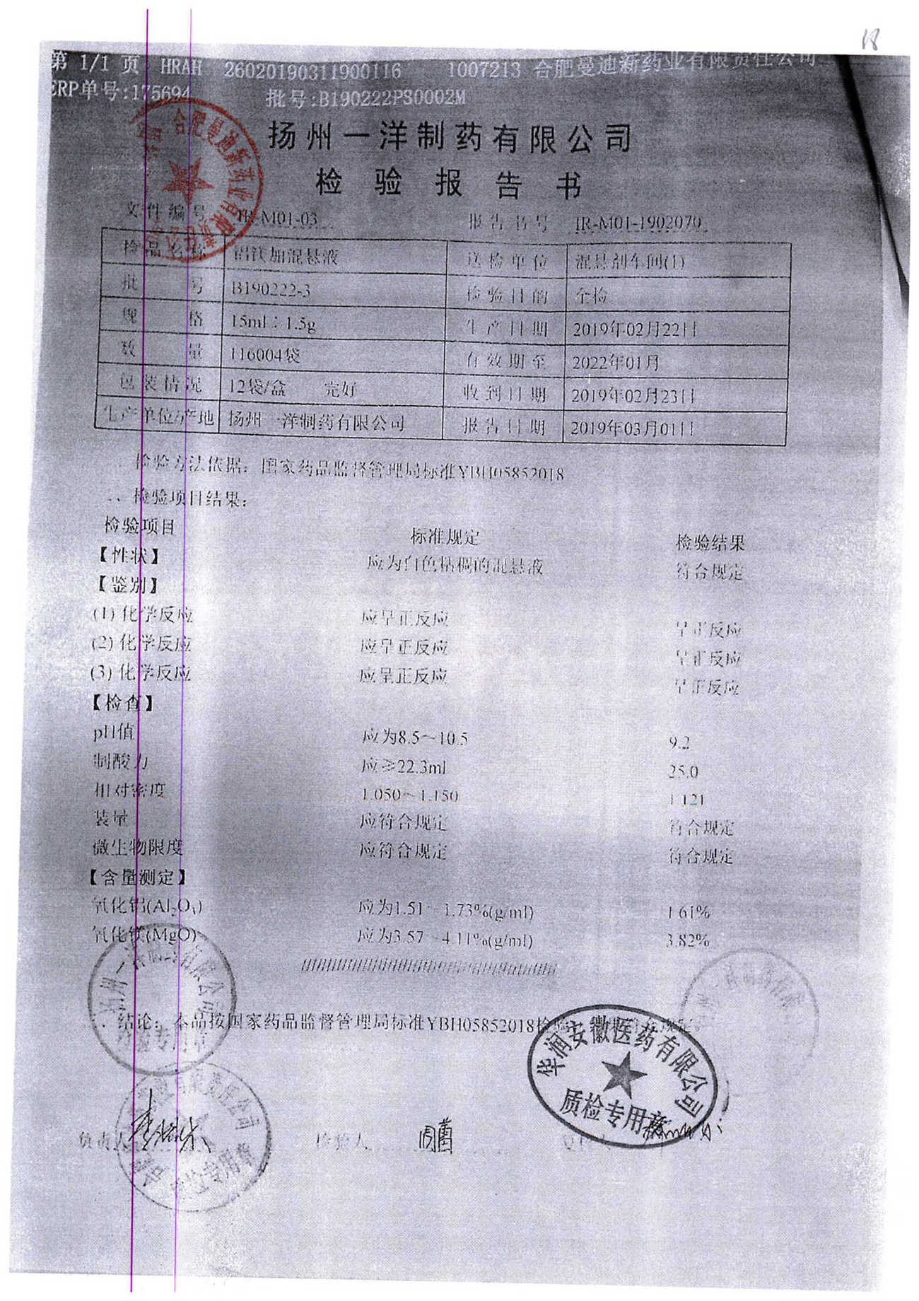 | 鋁鎂加混懸液 | 15ml:1.5g | B190412-2 | 查看詳情 |