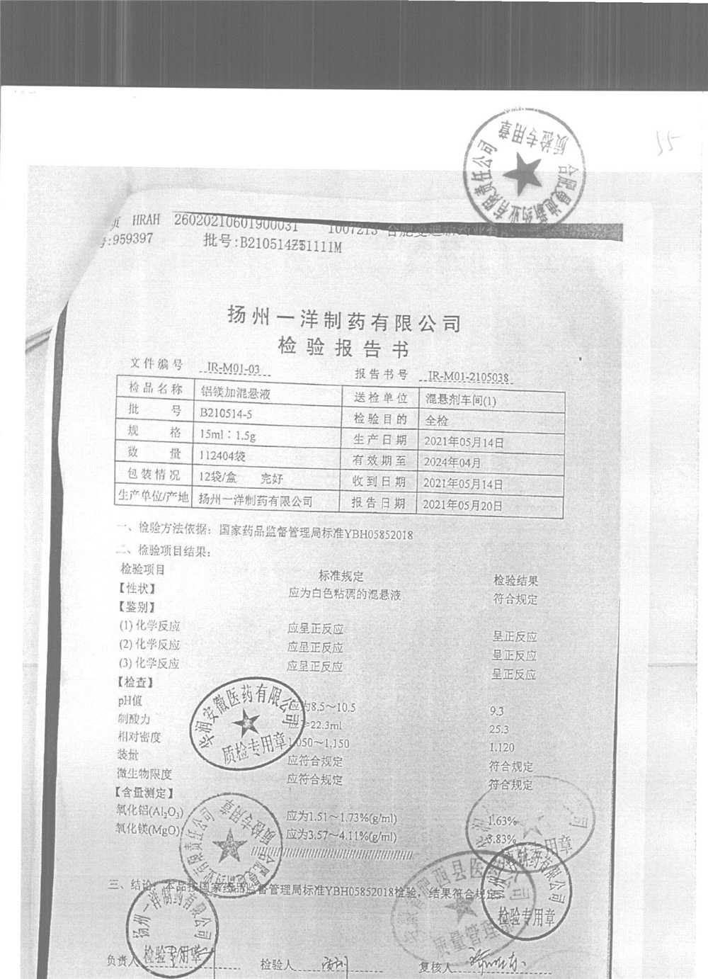 | 鋁鎂加混懸液 | 15ml:1.5g | B210514-5 | 查看詳情 |