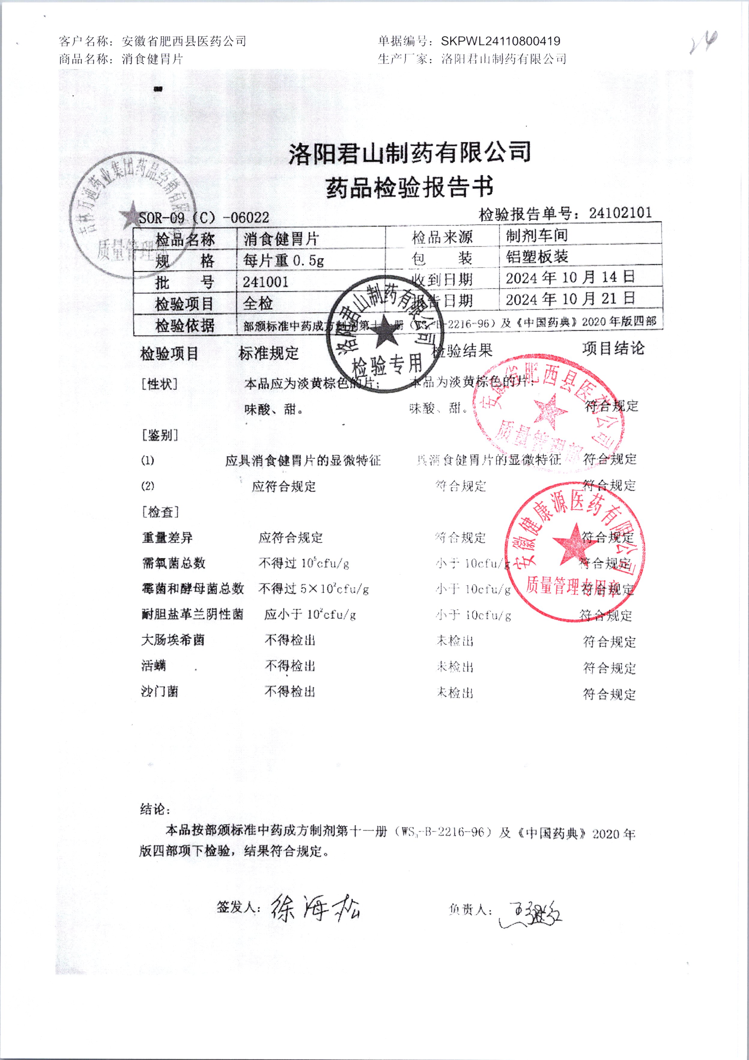 | 消食健胃片 | 0.5g | 241001 | 查看詳情 |
