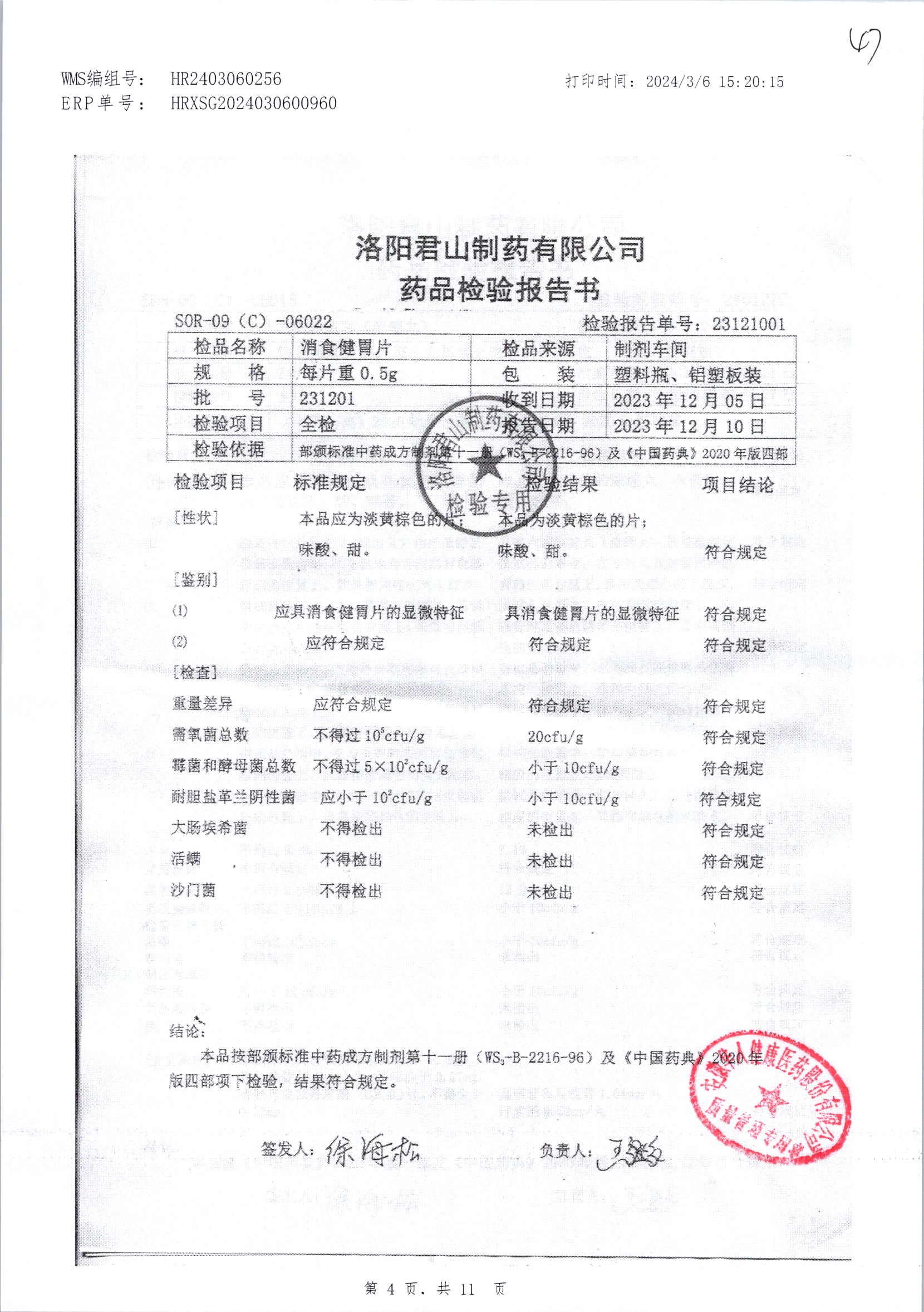 | 消食健胃片 | 0.5g | 211201 | 查看詳情 |