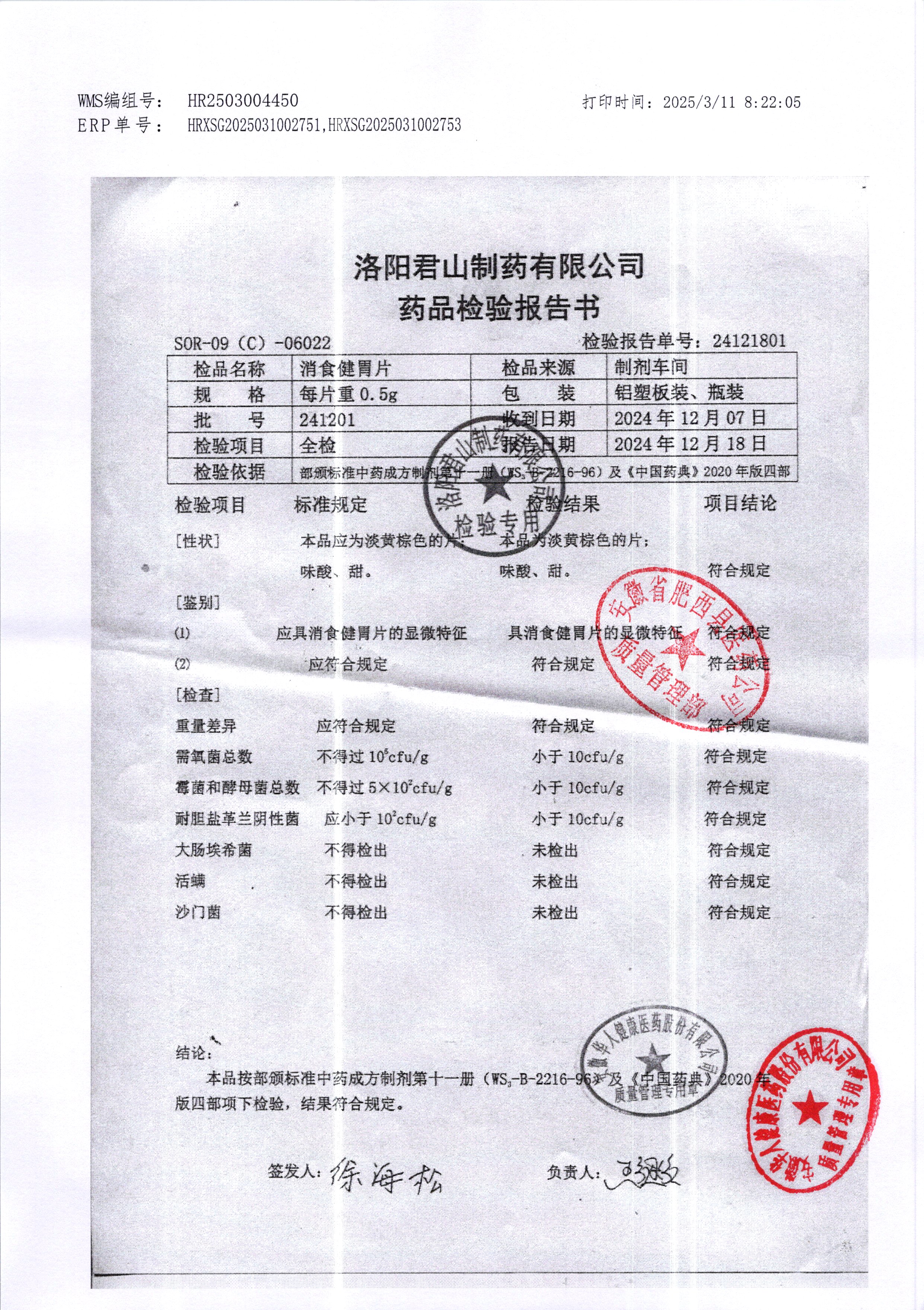 | 消食健胃片 | 0.5g | 241201 | 查看詳情 |
