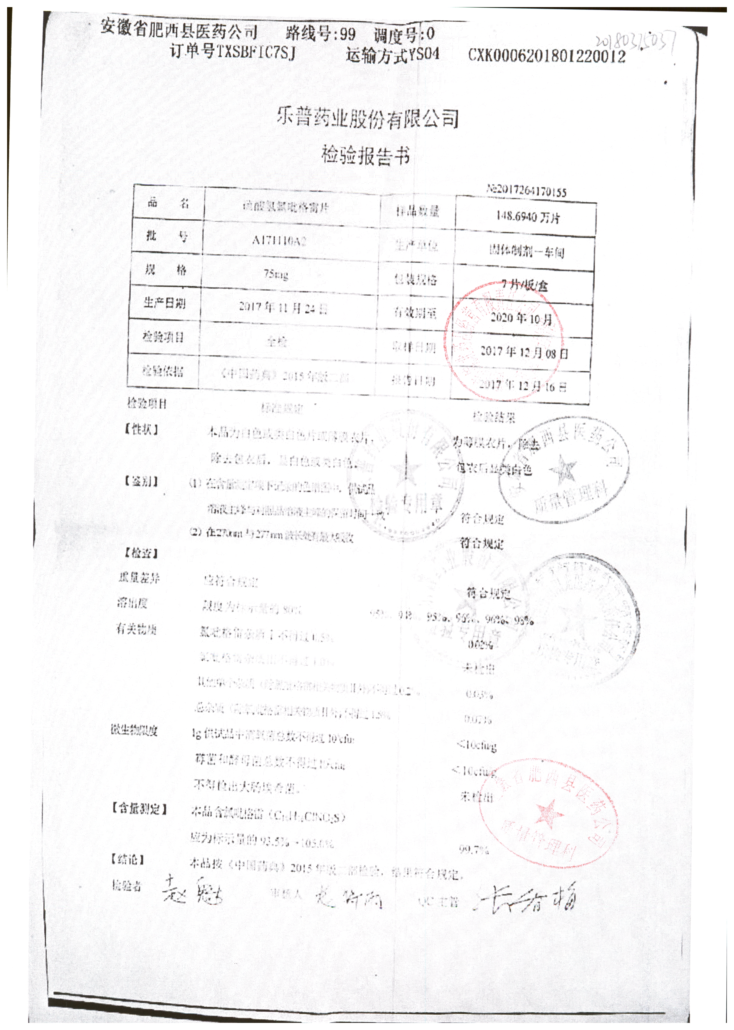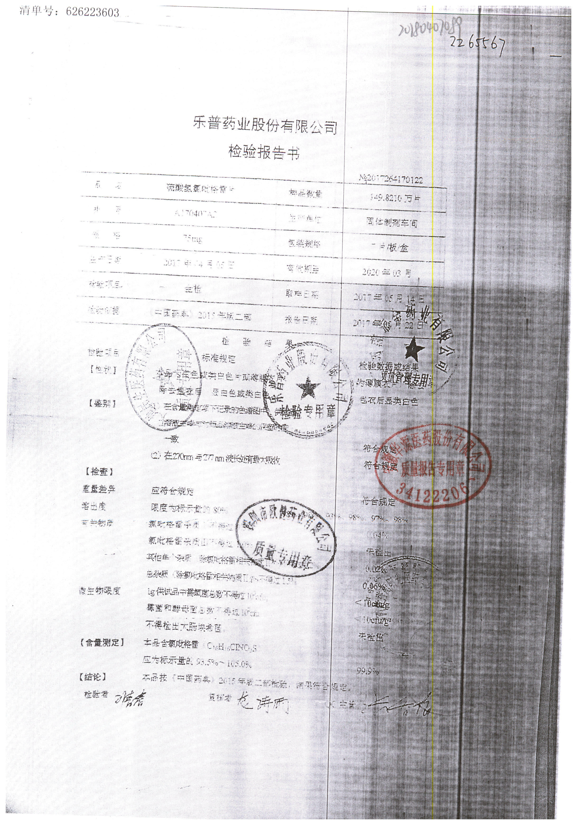 | 名稱 | 規(guī)格 | 批號(hào) | 藥檢報(bào)告 |