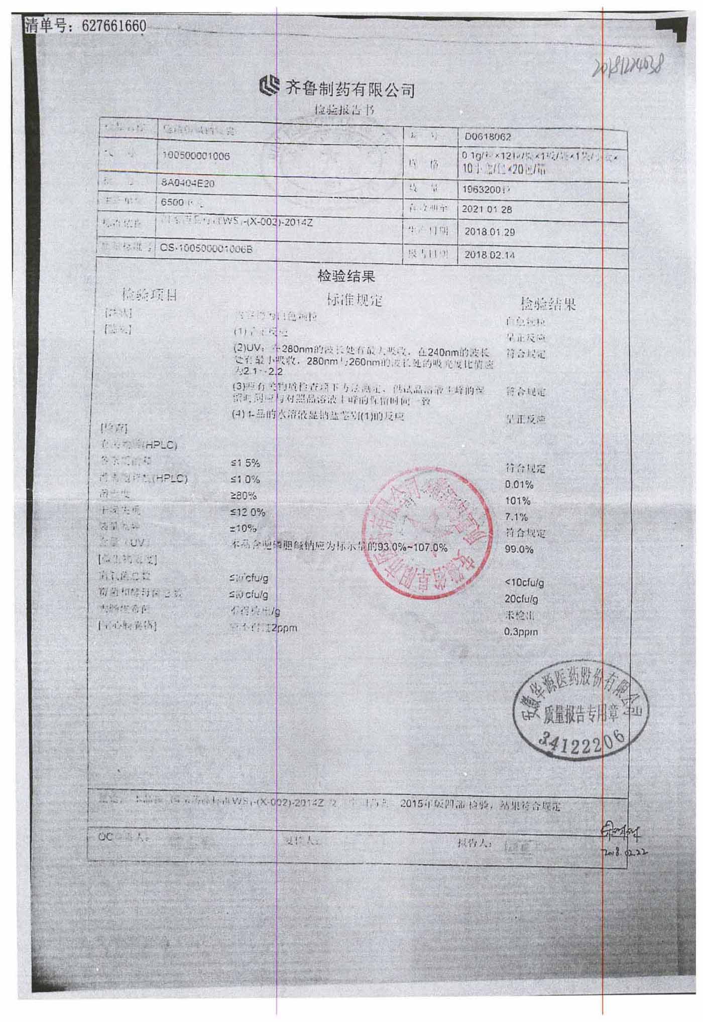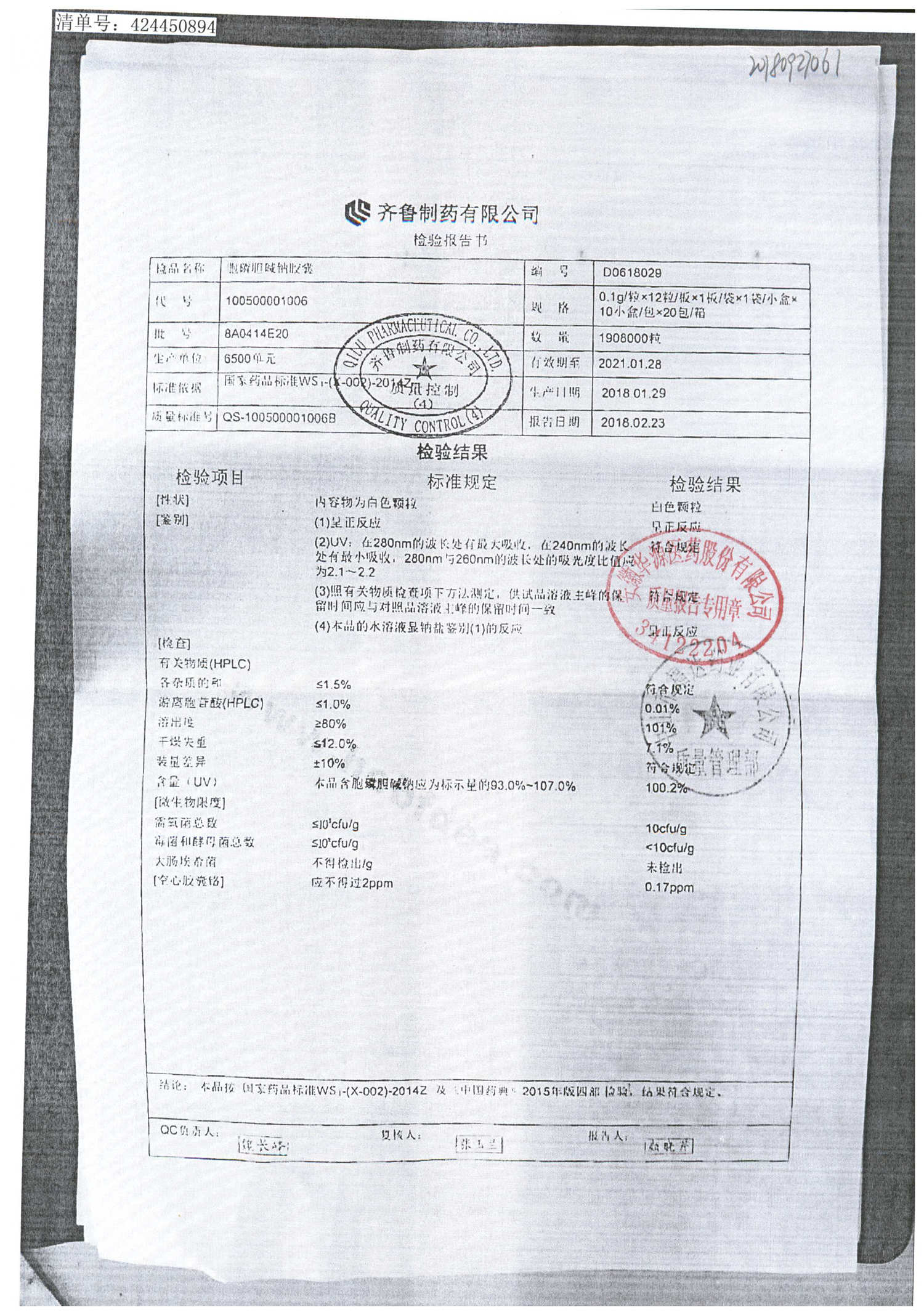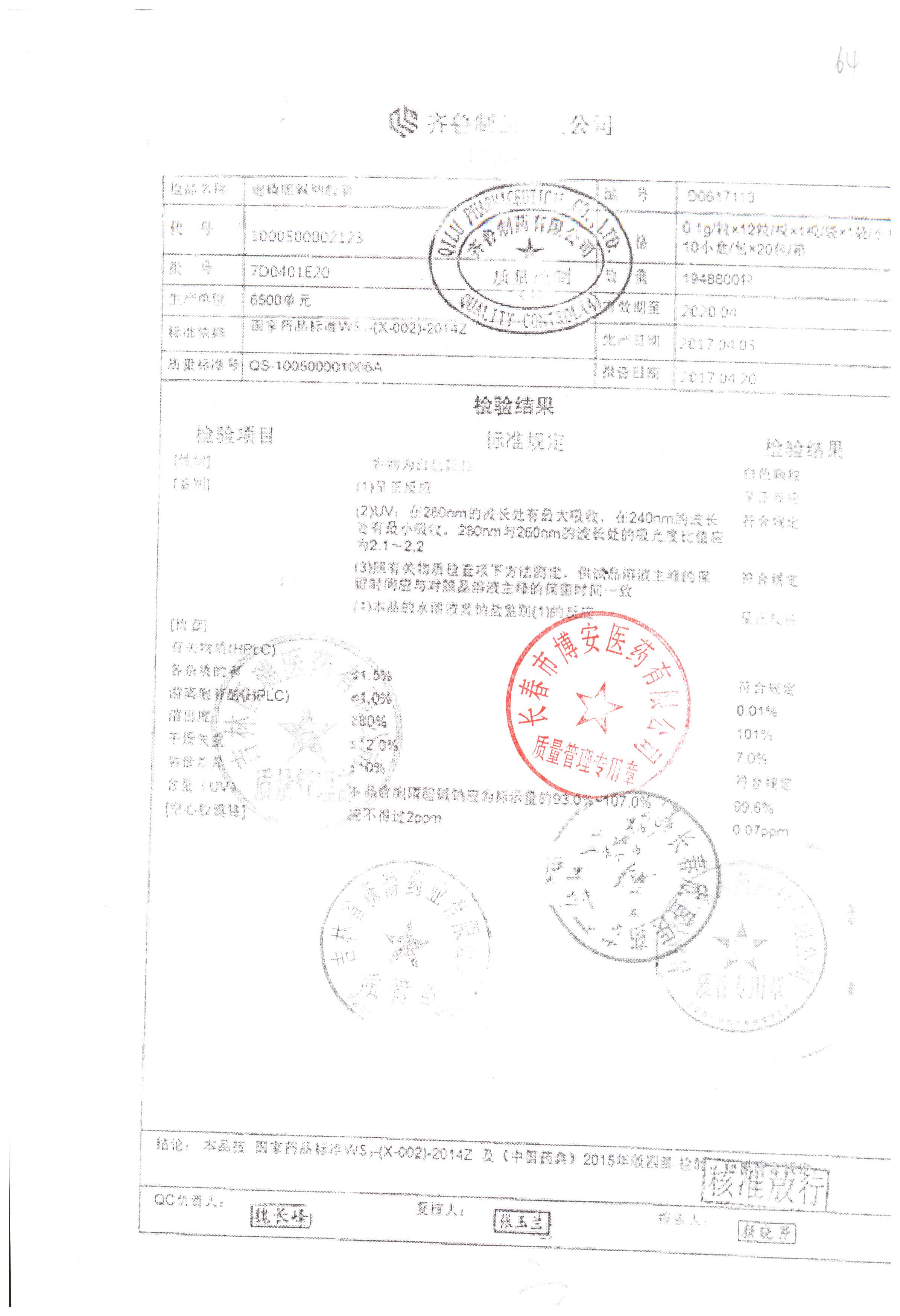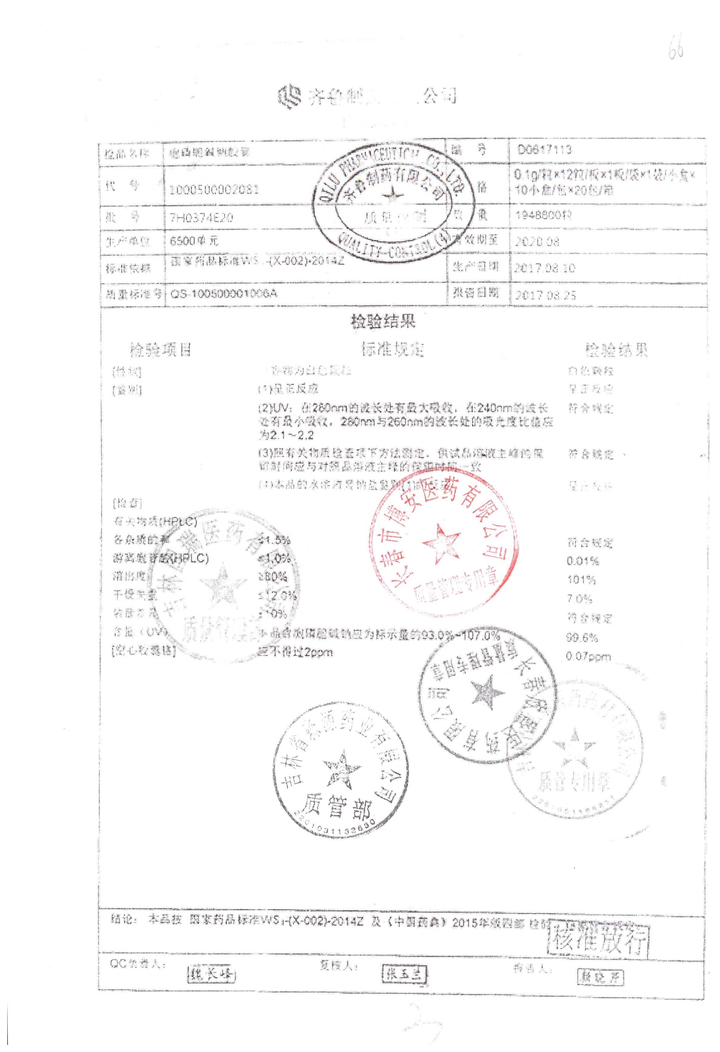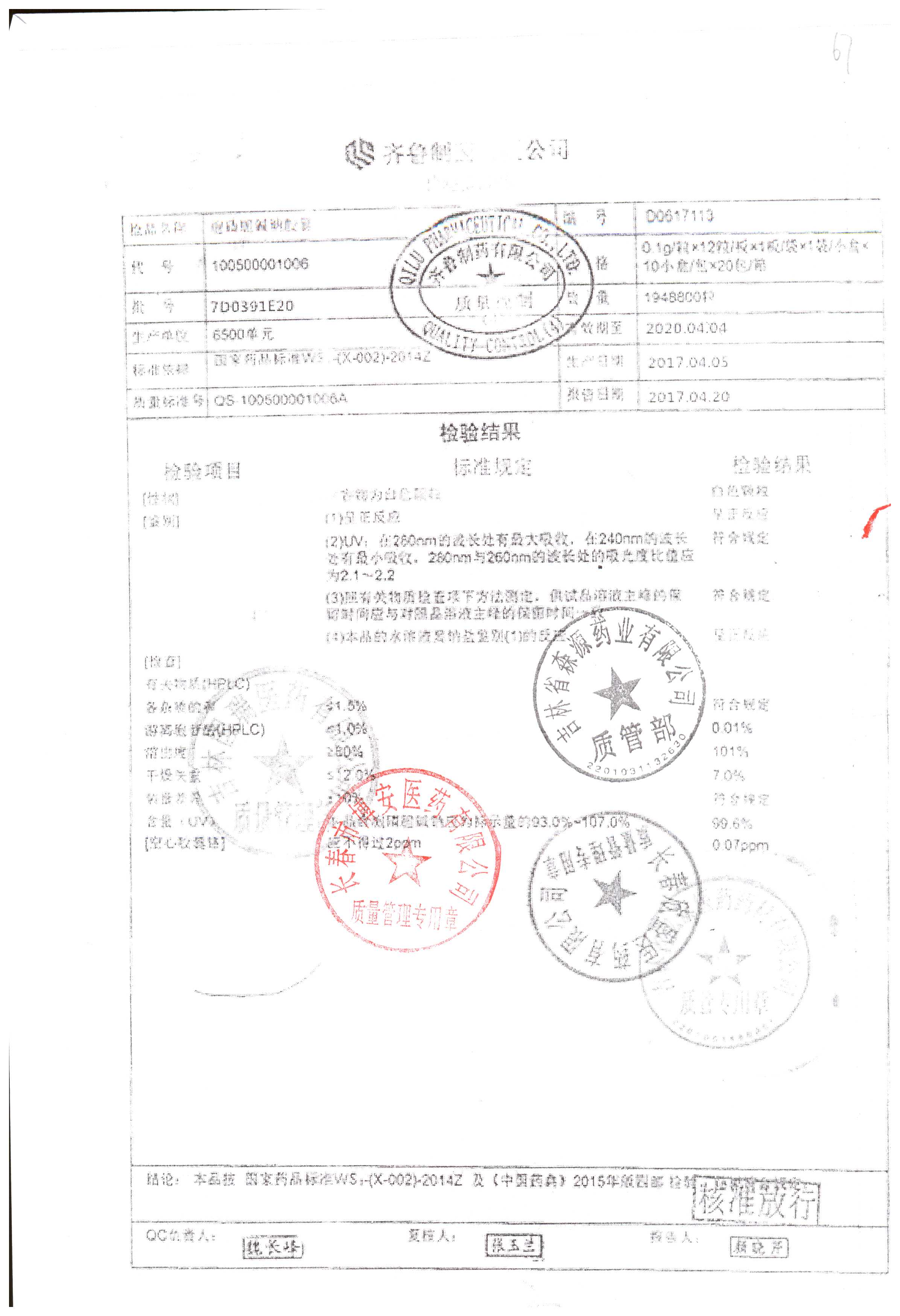 | 名稱 | 規(guī)格 | 批號 | 藥檢報(bào)告 |