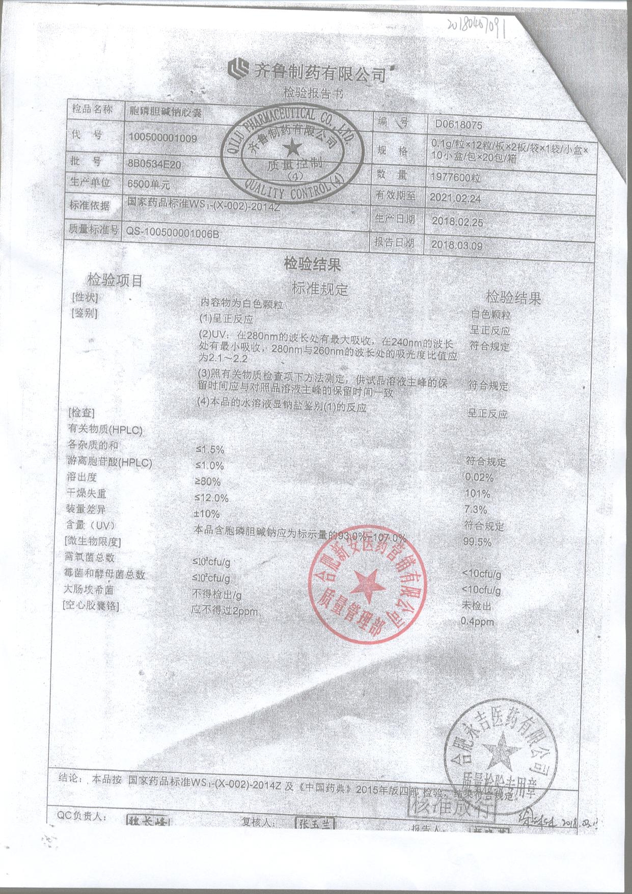 | 胞磷膽堿鈉膠囊 | 0.1g*12粒 | 8J1394E20 | 查看詳情 |