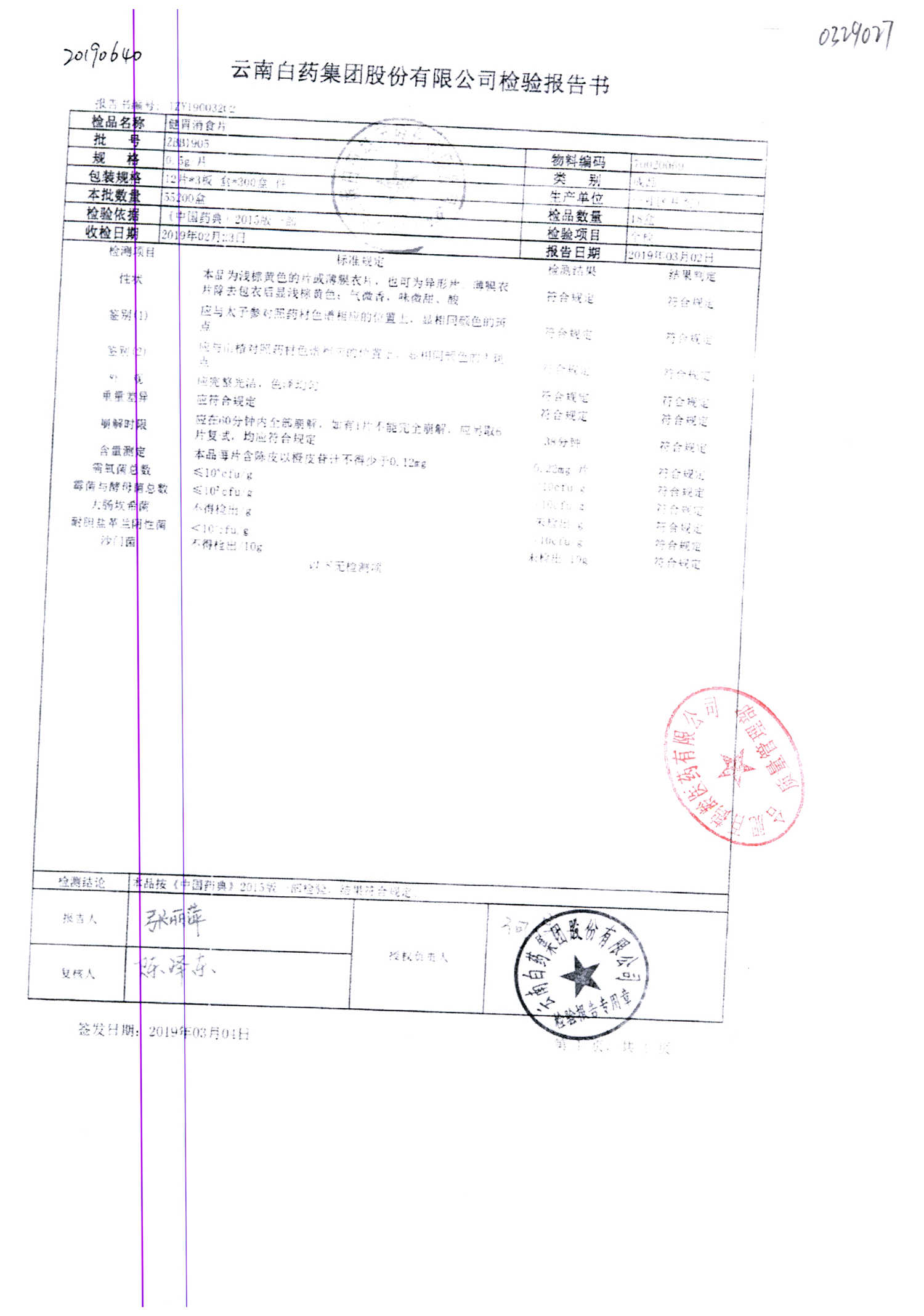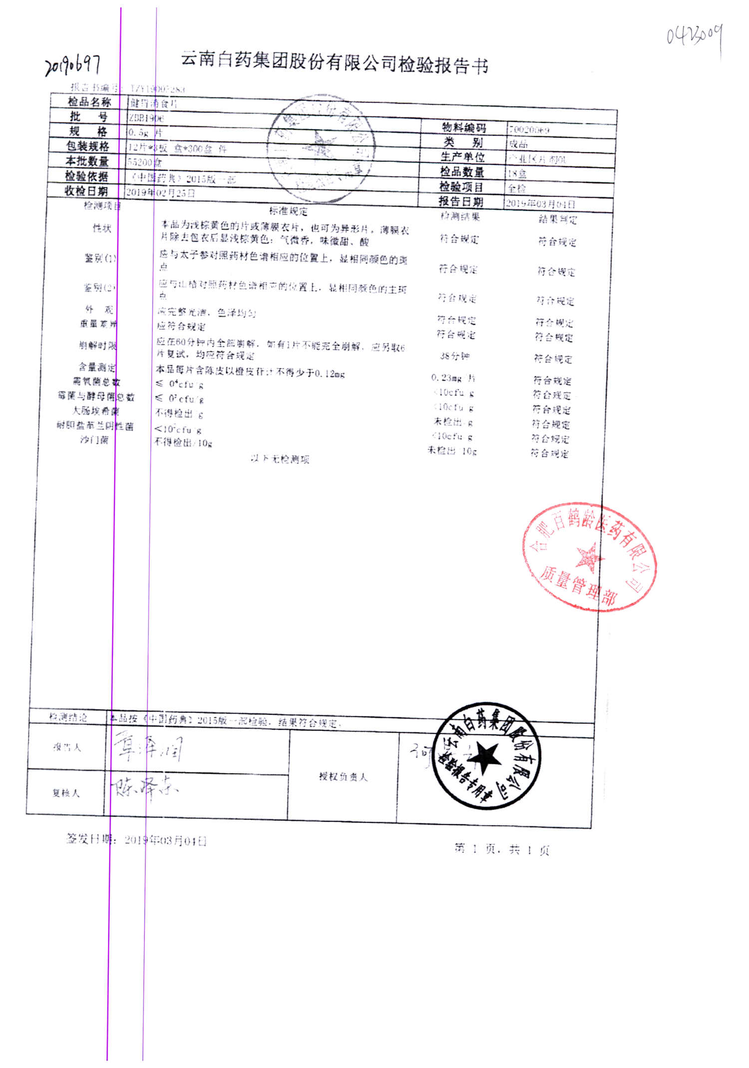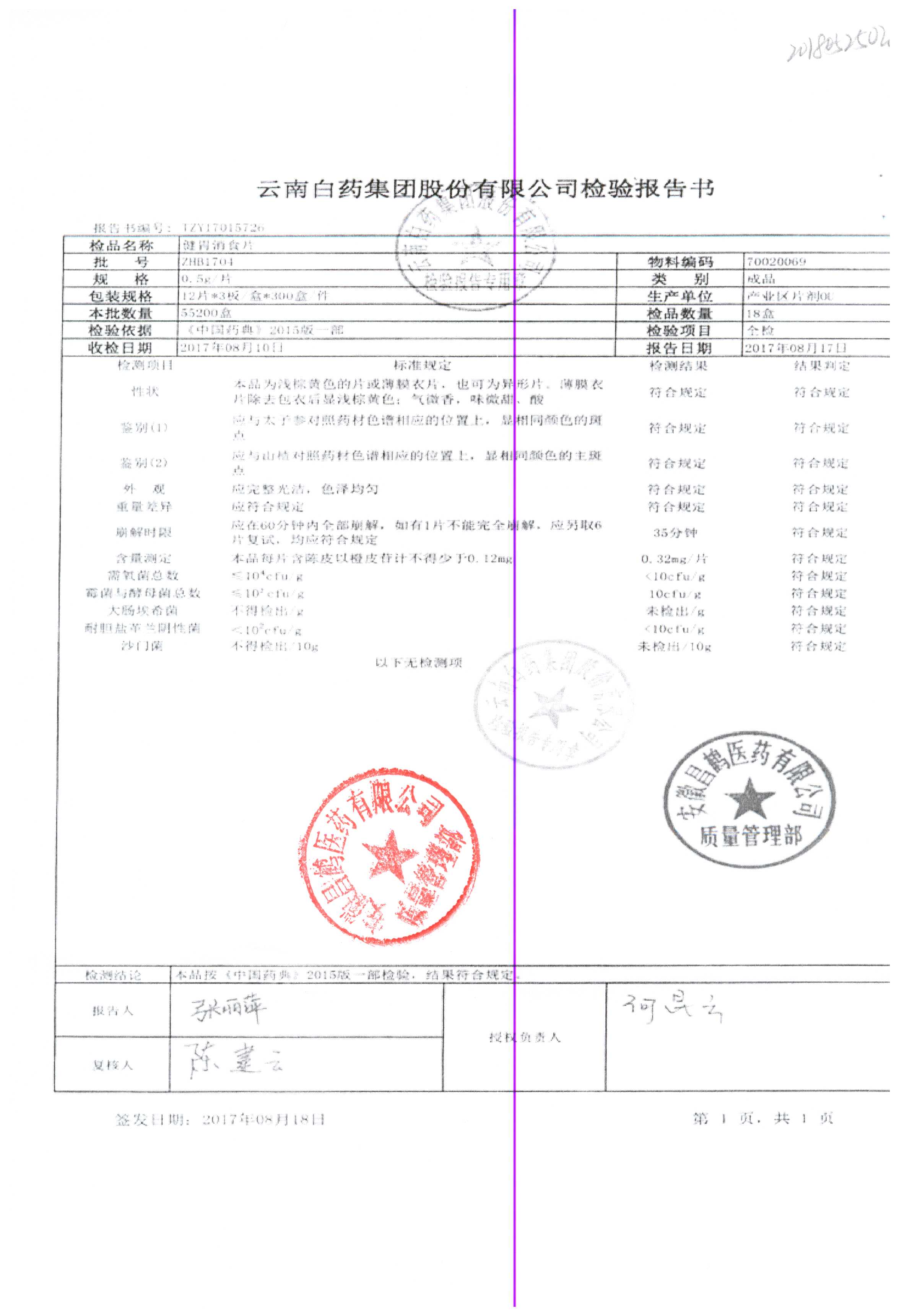 | 名稱 | 規(guī)格 | 批號(hào) | 藥檢報(bào)告 |