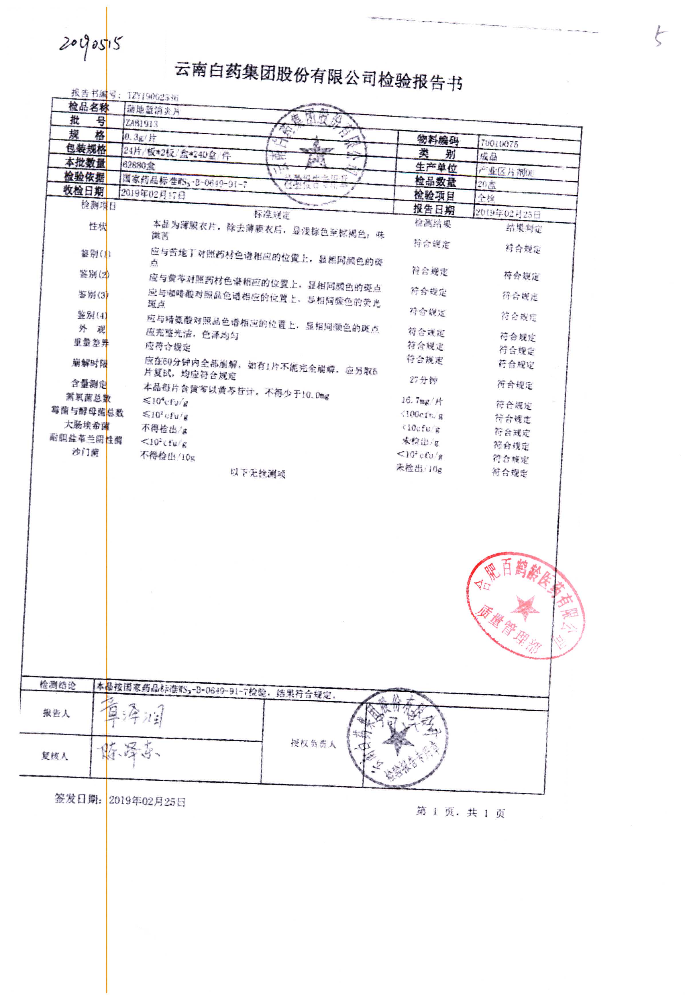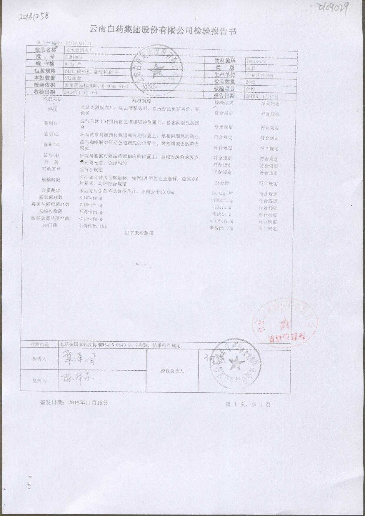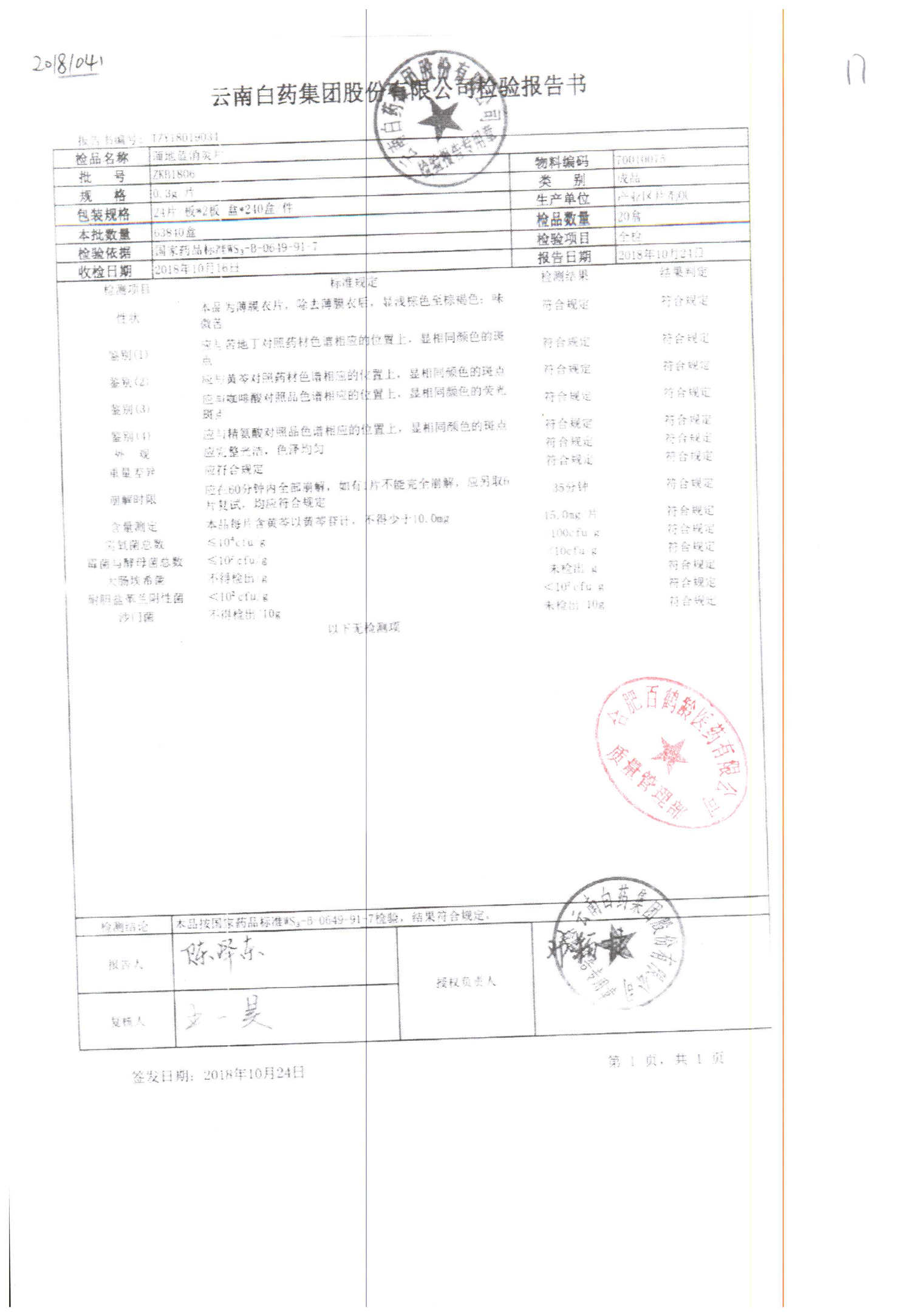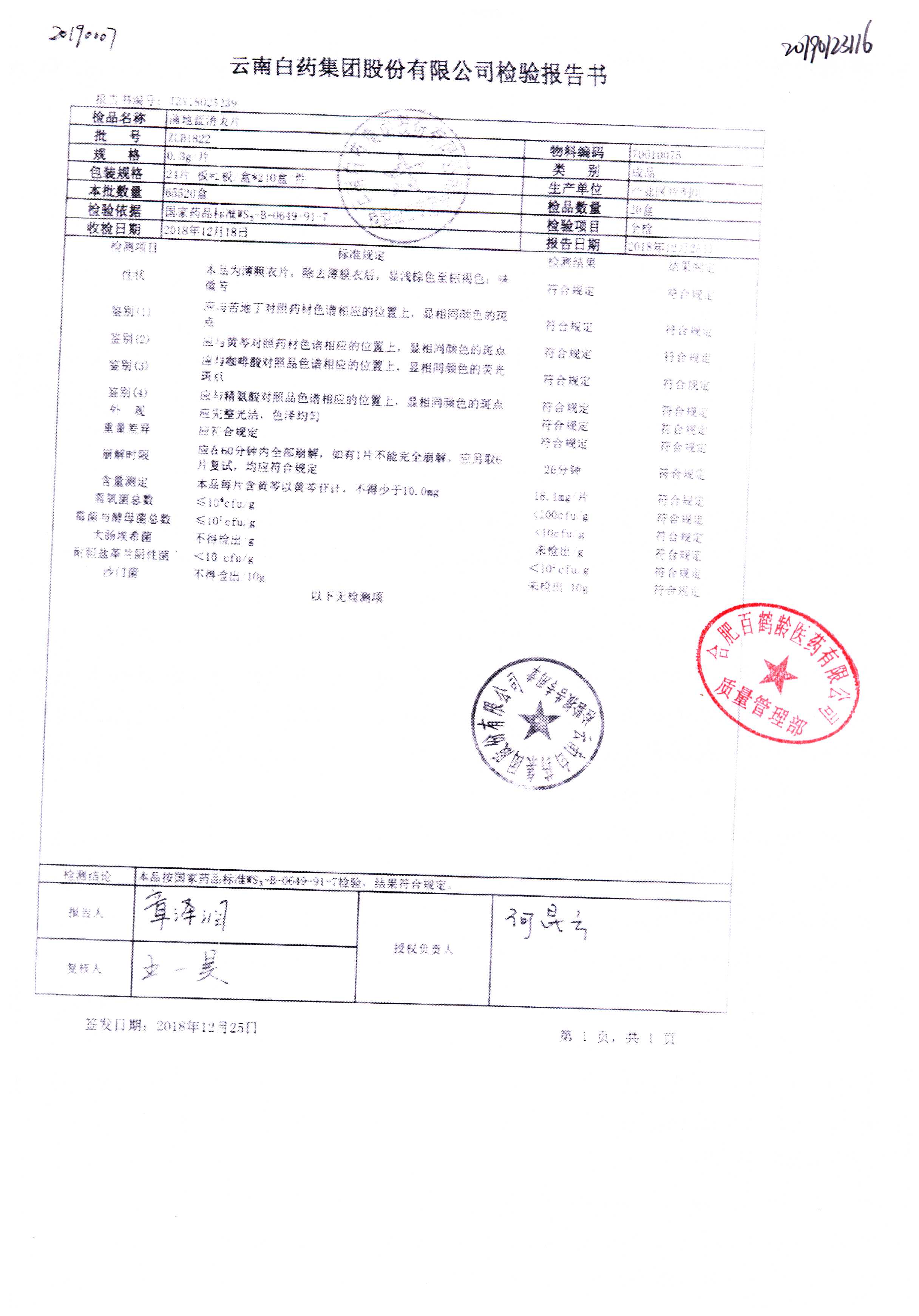 | 名稱 | 規(guī)格 | 批號 | 藥檢報告 |