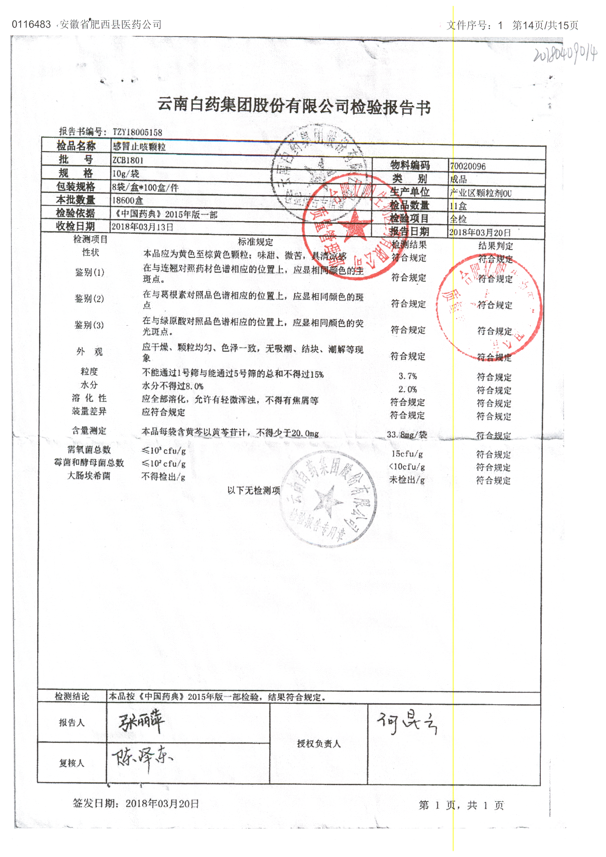 | 名稱 | 規(guī)格 | 批號 | 藥檢報告 |