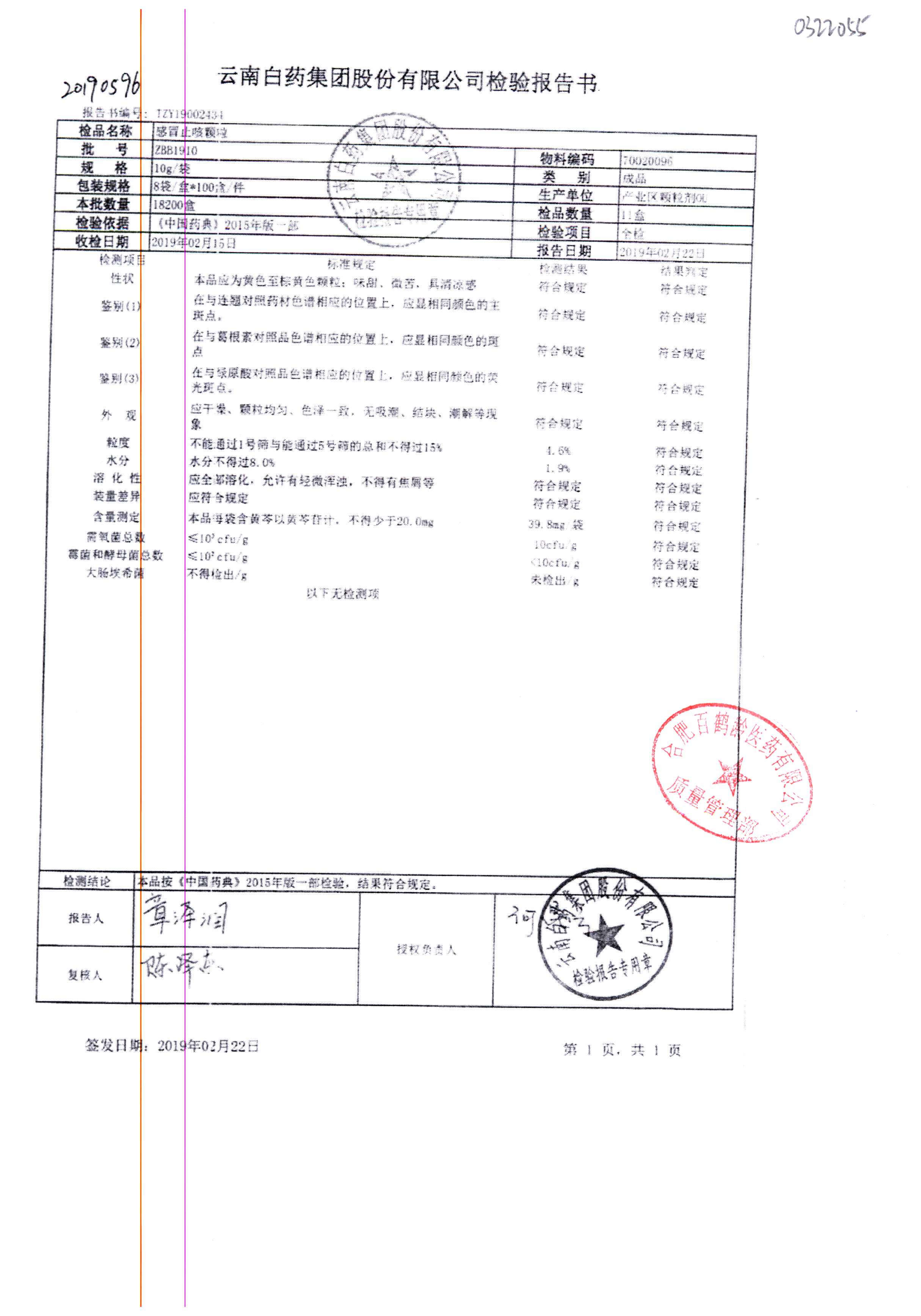 | 感冒止咳顆粒 | 10g*8袋 | ZBB1910 | 查看詳情 |